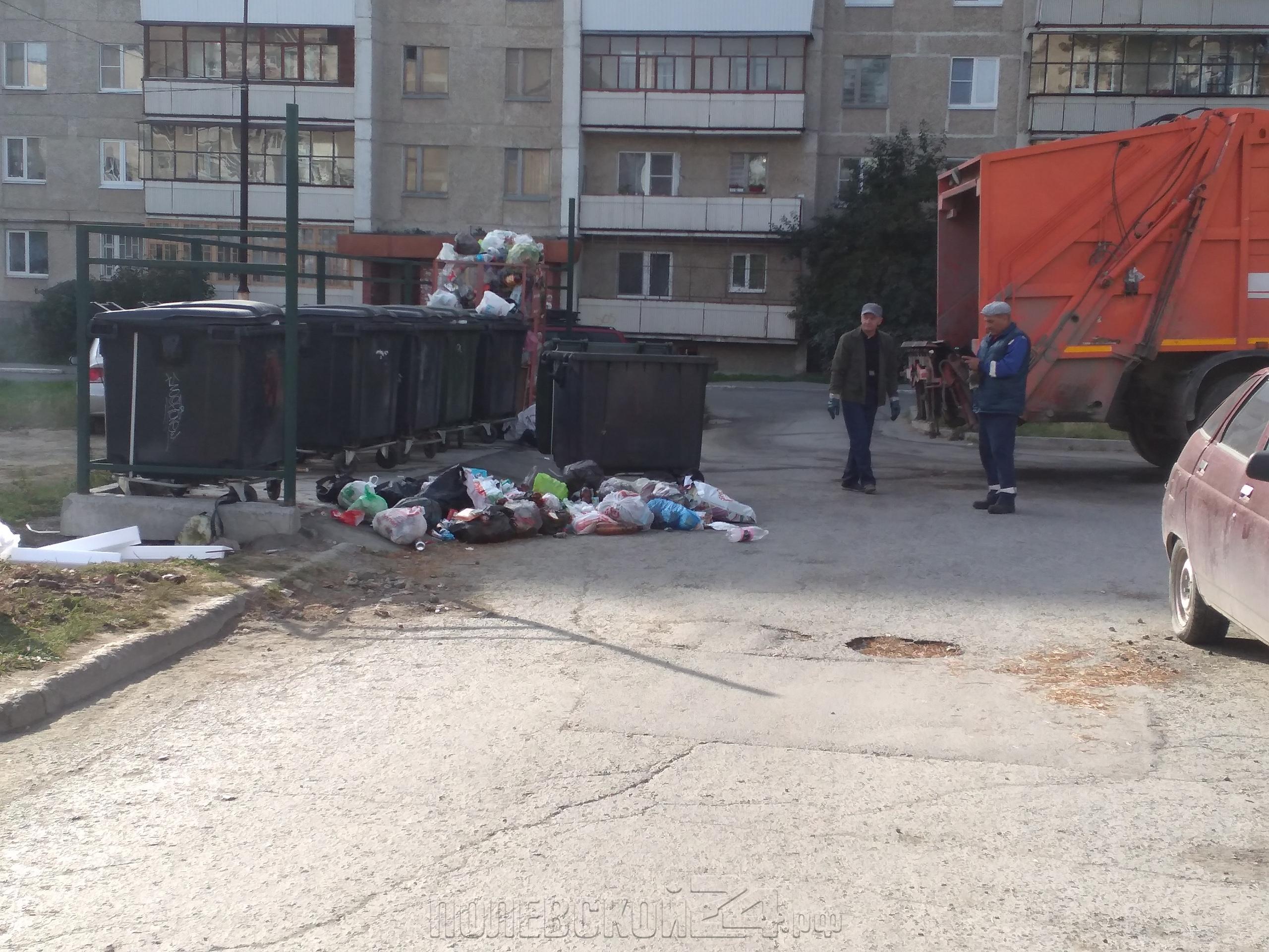 «Это двор З. Бор, дом 4 в 1 мкр-не. Шесть! контейнеров и все равно люди валят мусор рядом. Приехала мусорка. Заполненными оказались только два контейнера.