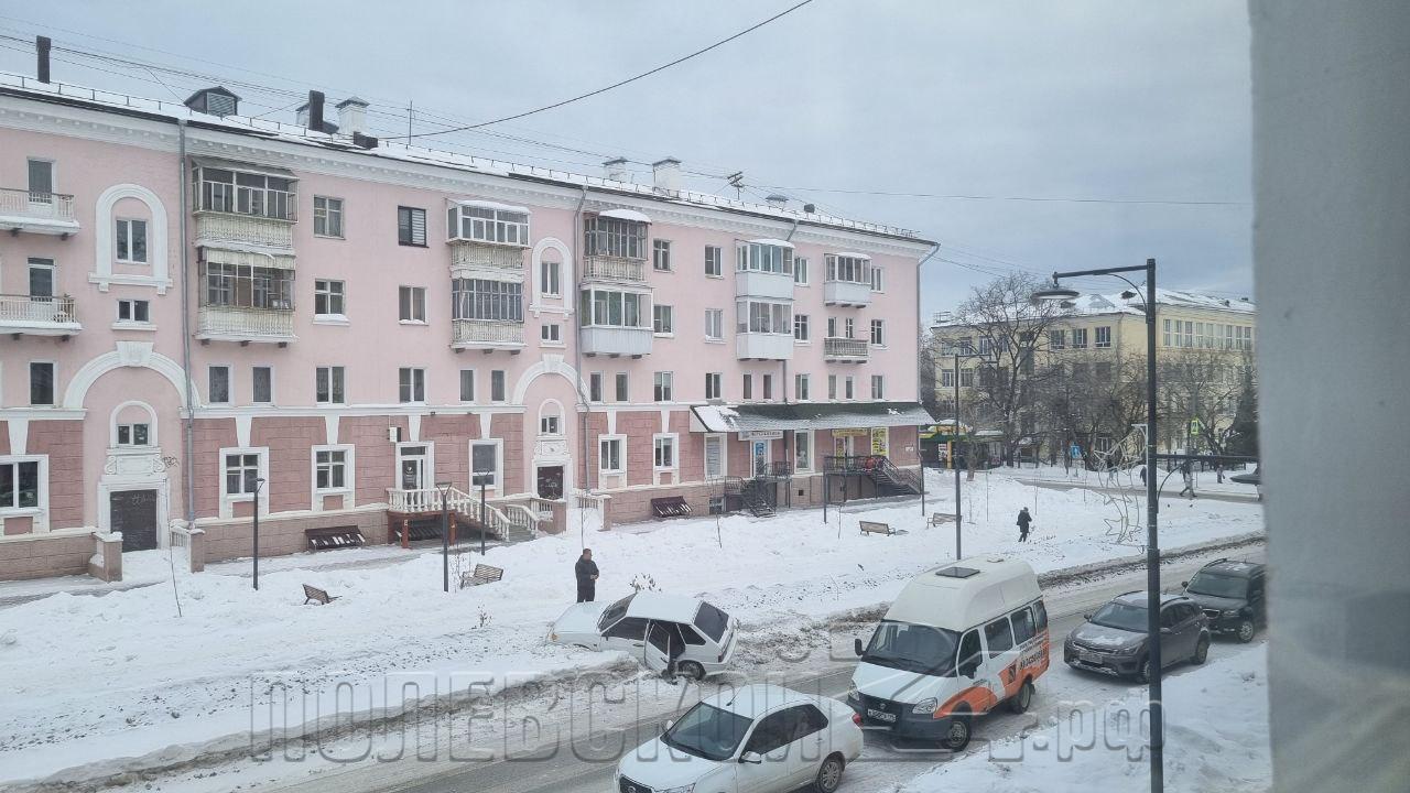 Автомобиль попал в плен слежавшегося снега в центре Полевского