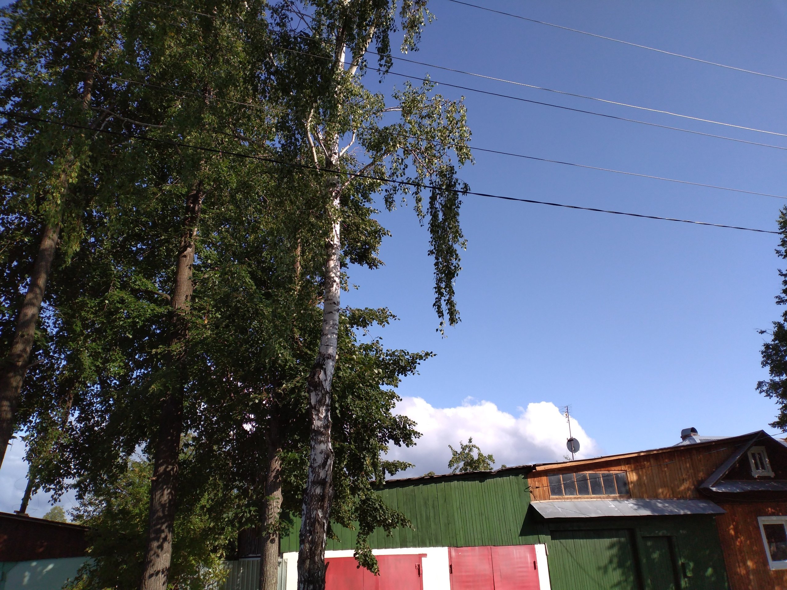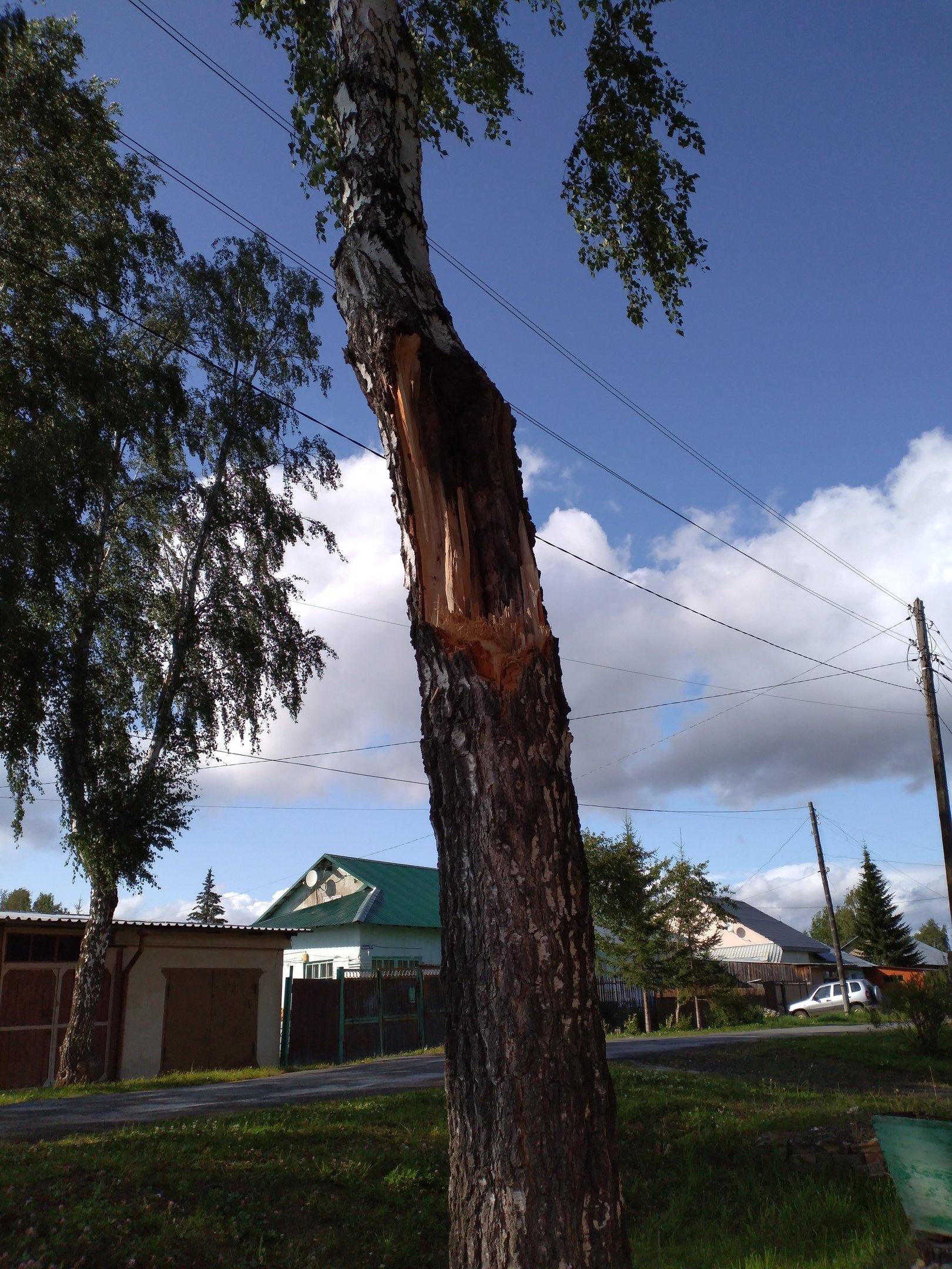На Чапаева на один из домов упала половина березы. Половина — потому что береза раздваивалась, и в целом устояла, но здоровенный сук все же упал на крытый двор.