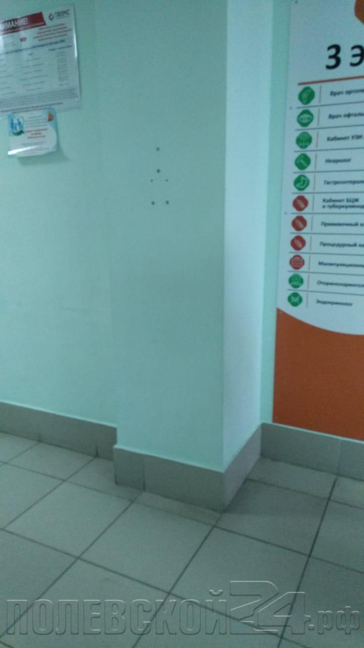 В детской поликлинике на Ленина, 1, прямо со стены вырвали и унесли дозатор для антисептической обработки рук.