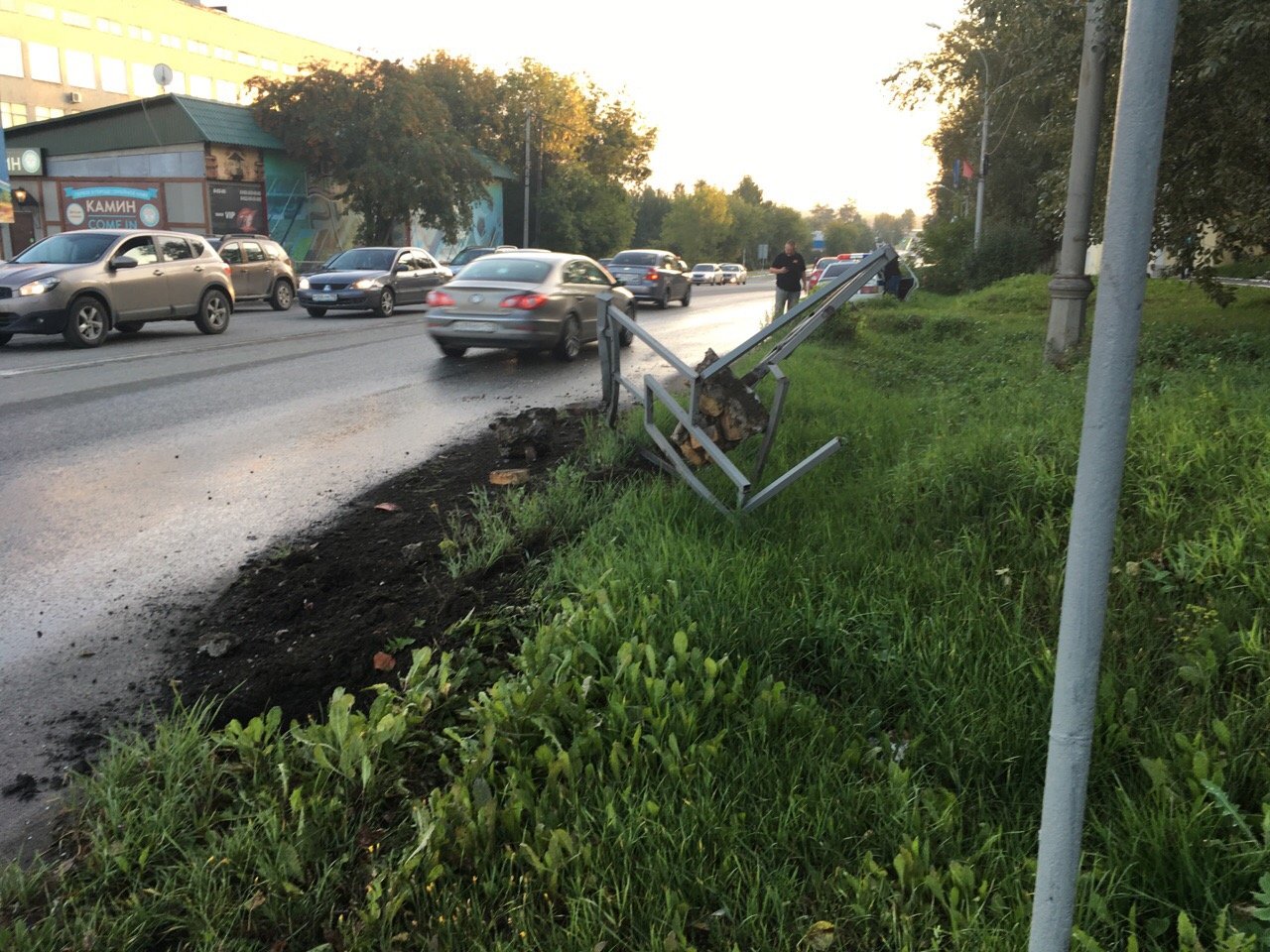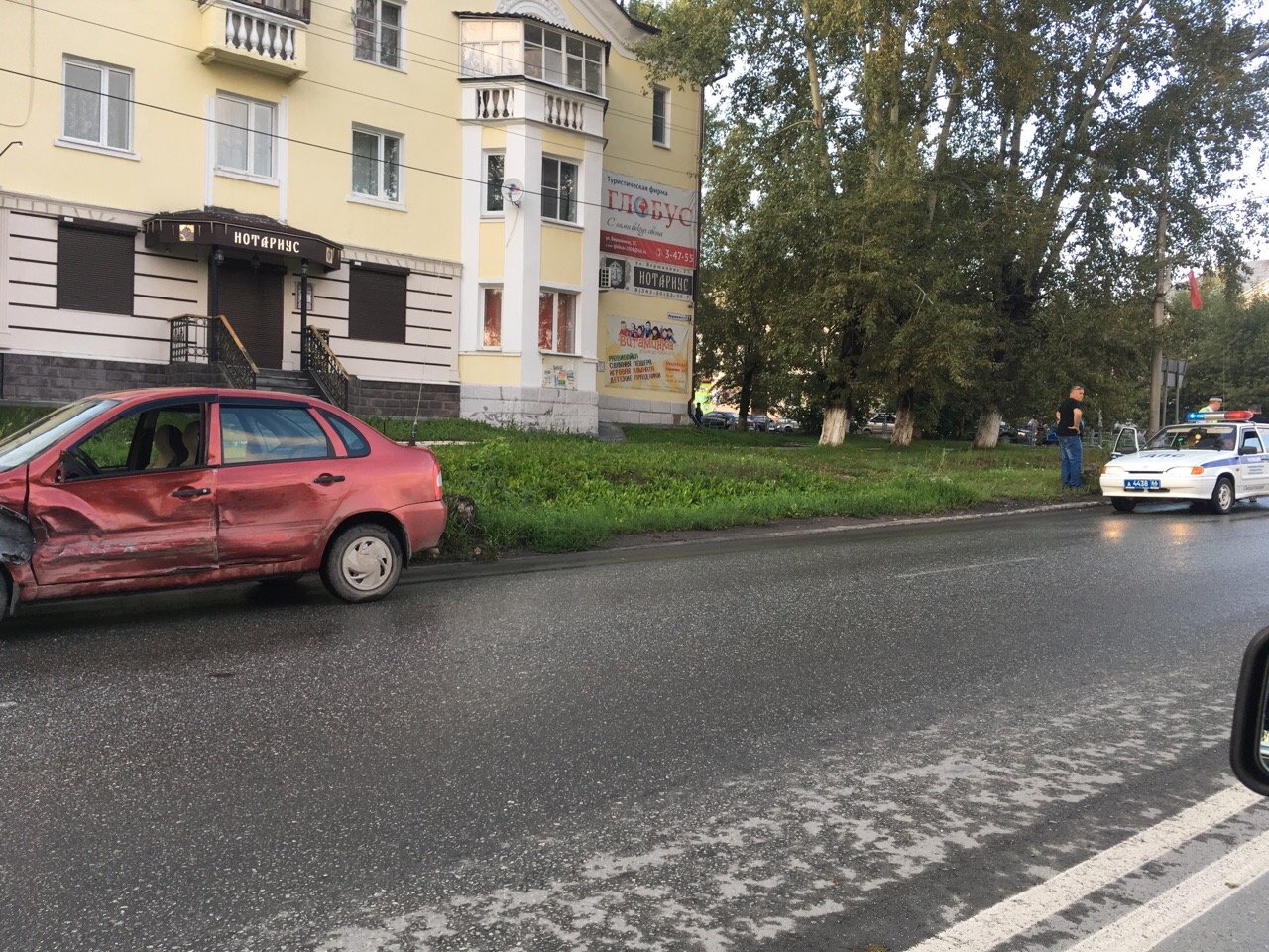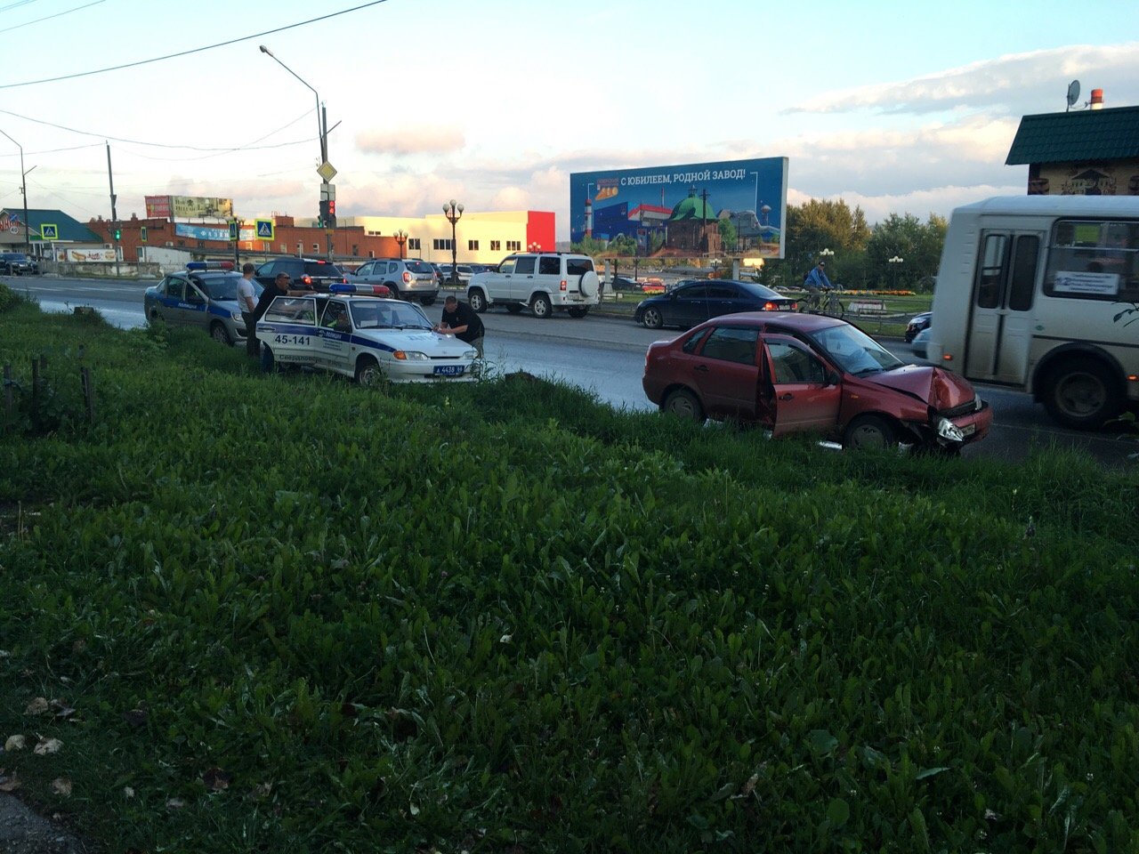 Менее часа назад «лада калина», что характерно, красная, мирно ехала по Вершинина через перекресток с Ленина в сторону заводоуправления СТЗ. Настречу ей ехала другая продукция Волжского автозавода — «Икс-рэй», но он был серый. На перекрестке серый начал поворачивать на Ленина, но вместо свободного пути на пути у него оказался бок «калины красной». От могучего удара более легкая малолитражка приняла резко вправо, выворотила забор и остановилась уже в районе 25 дома. «Икс-рей» так и застыл в центре перекрестка.