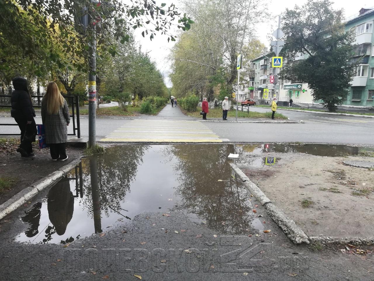 И поэтому весь поток пешеходов идет по тротуару ближе к дороге (его состояние тоже, надо сказать, оставляет желать очень многого). И упирается в лужу. Как 10, 30, 30 и 40 лет назад. И пробираются по тропиночке, по поребрику, по краешку.