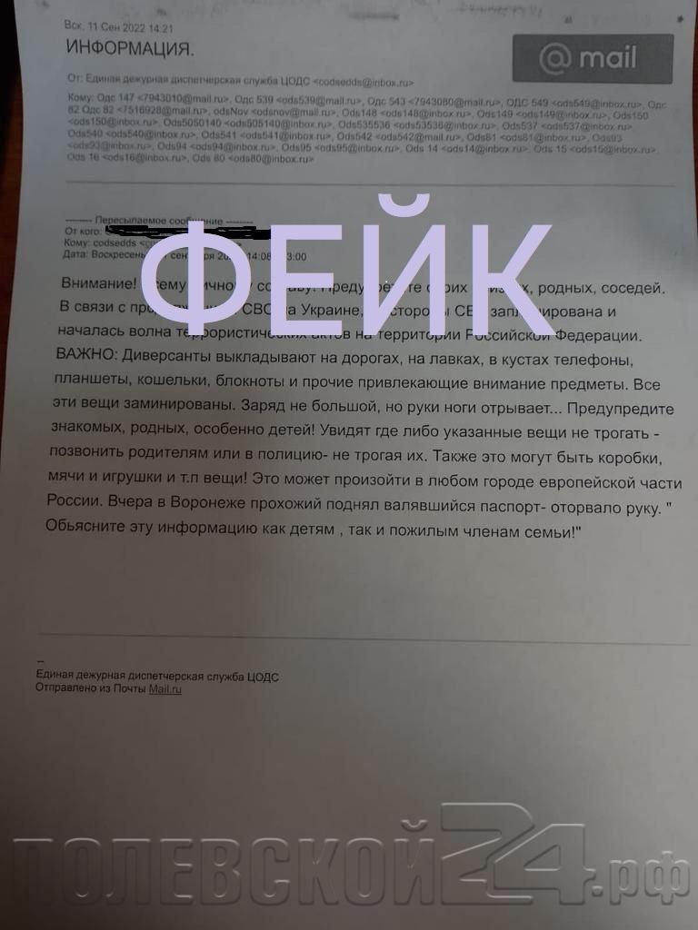Не верьте «вотсапу»! Рассылка «от ЕДДС» о раскидываемых минах — фейк!