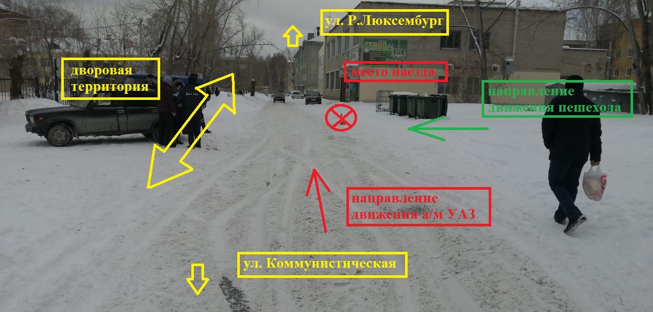 Стоит отметить, что у водителя почтового УАЗа водительский стаж 19 лет. В ходе выяснения обстоятельств из объяснения водителя стало ясно, что при движении по .Черемушкам в сторону Розы Люксембург, 7  к Почтовому отделению №8 со скоростью примерно 5 км/ч. в районе магазина «Ревда» услышал глухой удар в автомобиль. После этого он остановился, вышел из автомобиля, обнаружил пешехода и предложил помятой девушке проехать для оказания медицинской помощи. В свою очередь девушка-пешеход пояснила, что в этот момент двигалась быстрым шагом между домами №13 и 15 в Черемушках, в этот момент подросток была в наушниках, слушала музыку на голове был капюшон. При переходе на другую сторону дороги автомобиль она не видела, неожиданно почувствовала удар, от которого упала, в шоковом состоянии встала и хотела уйти, но водитель УАЗ 374195 предложил проехать в больницу.