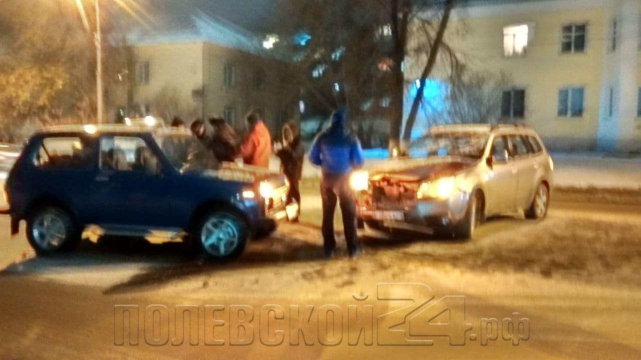 На Вершинина в районе выезда от заводских стоянок столкнулись Нива и Субару. По положению машин получается, что Субару въехал Ниве в левую фару. У японской машины помят нос, у отечественной — левое крыло и пострадала фара.