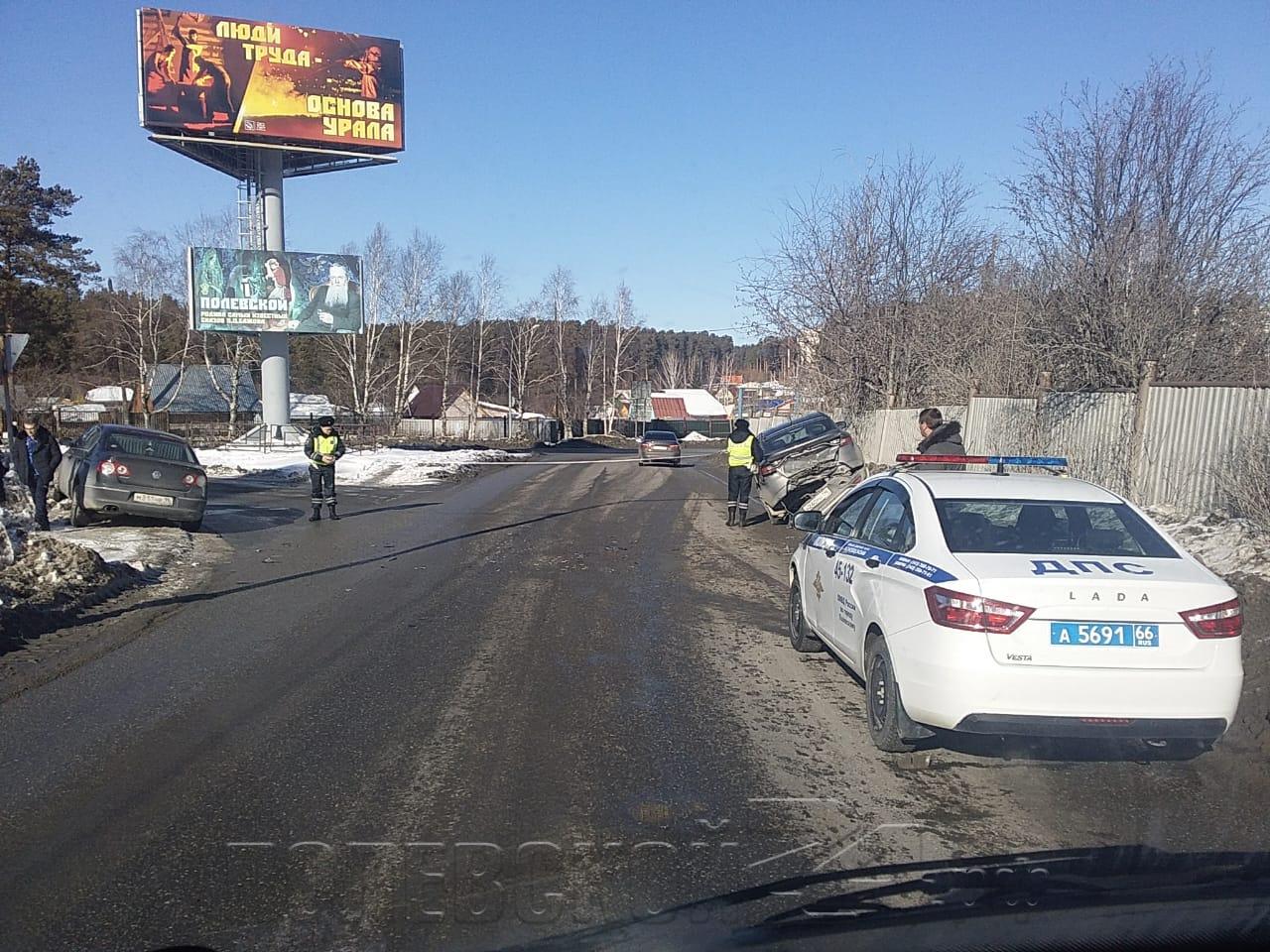 Менее часа назад на выезде из города (поворот с Совхозной на трассу) два легковых автомобиля не смогли поделить дорогу.