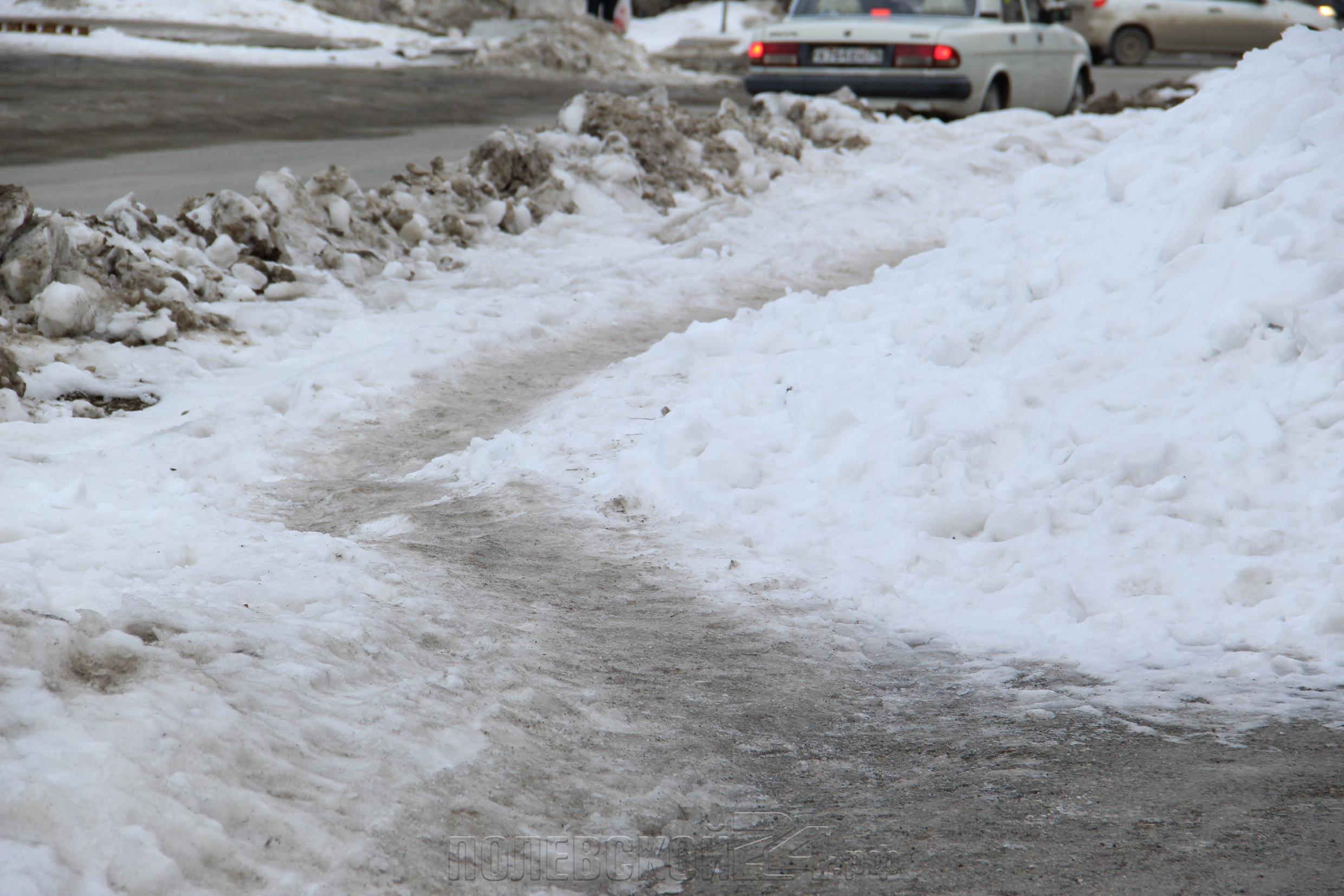 Как видите, приходится балансировать между горой грязного снега и выходом на проезжую часть.