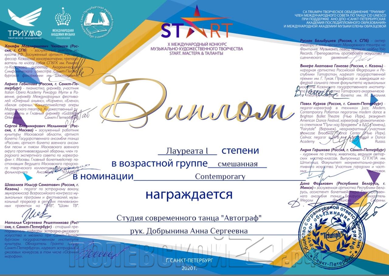 Студия современного танца «Автограф» продолжает покорять онлайн-пространство!!! Старшая группа с номером «Объект исследования» (премьера этого сезона) приняла участие в X Международном конкурсе START. МАСТЕРА&ТАЛАНТЫ.
