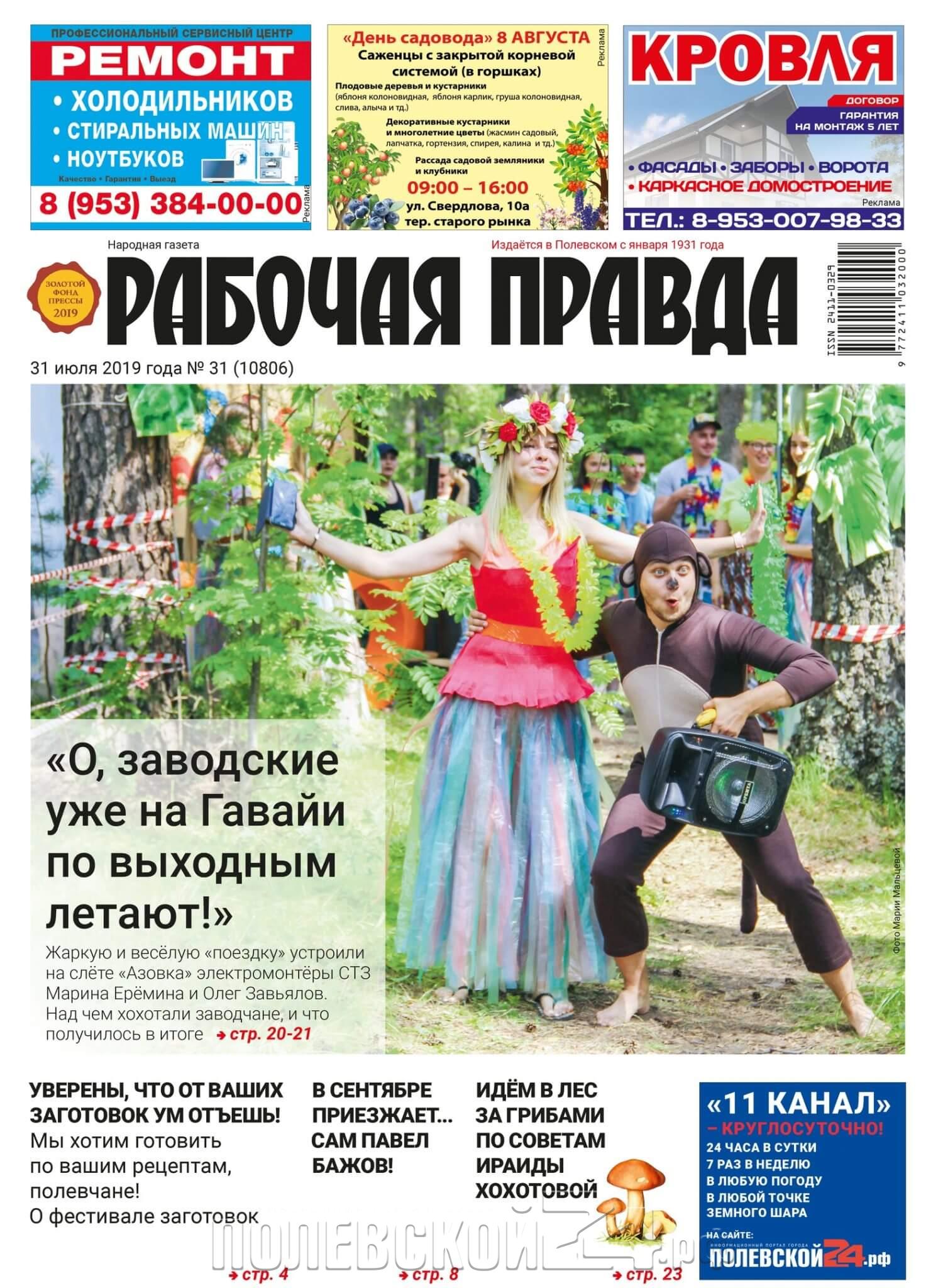 Вышел свежий номер газеты «Рабочая правда». Читайте, как жил город и полевчане на минувшей неделе. Приглашаем на Гавайи. С первой полосы окунитесь в лето и если вам интересно, сразу же открывайте 20 и 21 страницы – здесь подробный фототчет с «Азовки».