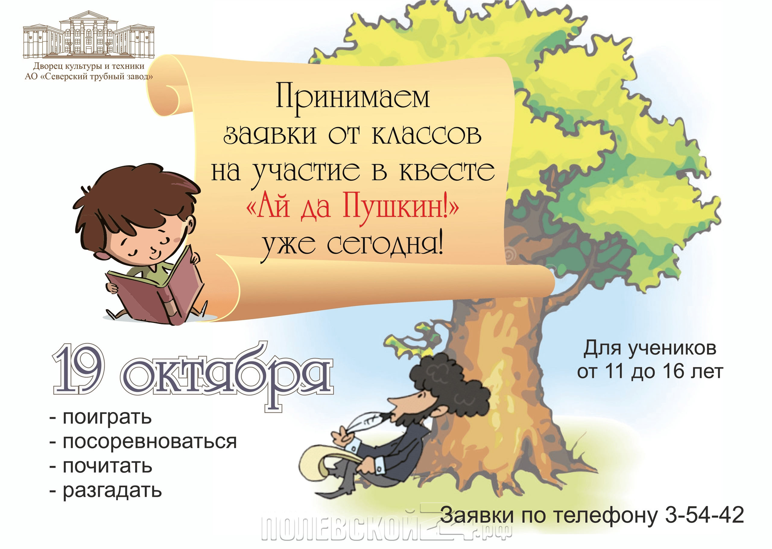 ДК СТЗ приглашает школьников на пушкинский квест!