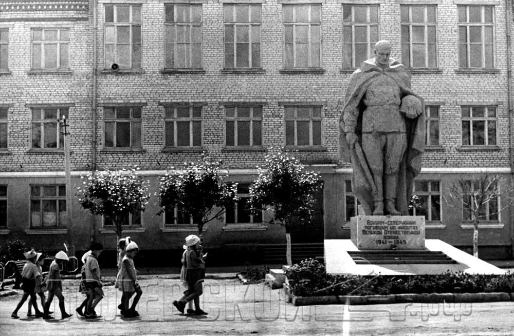 Скульптор Любовь Турская изобразила солдата, выходящего из боя. Склонившись над братской могилой, он поклялся отомстить врагу. Аварийная скульптура – главная часть мемориала «Воинам Великой Отечественной войны 1941–1945 гг.». Иногда для краткости его называют «памятник Солдату».Через считанные годы после установки вокруг него появились плиты с фамилиями погибших на фронтах северчан. А к 40-летию Победы подножие украсилось Вечным огнем.