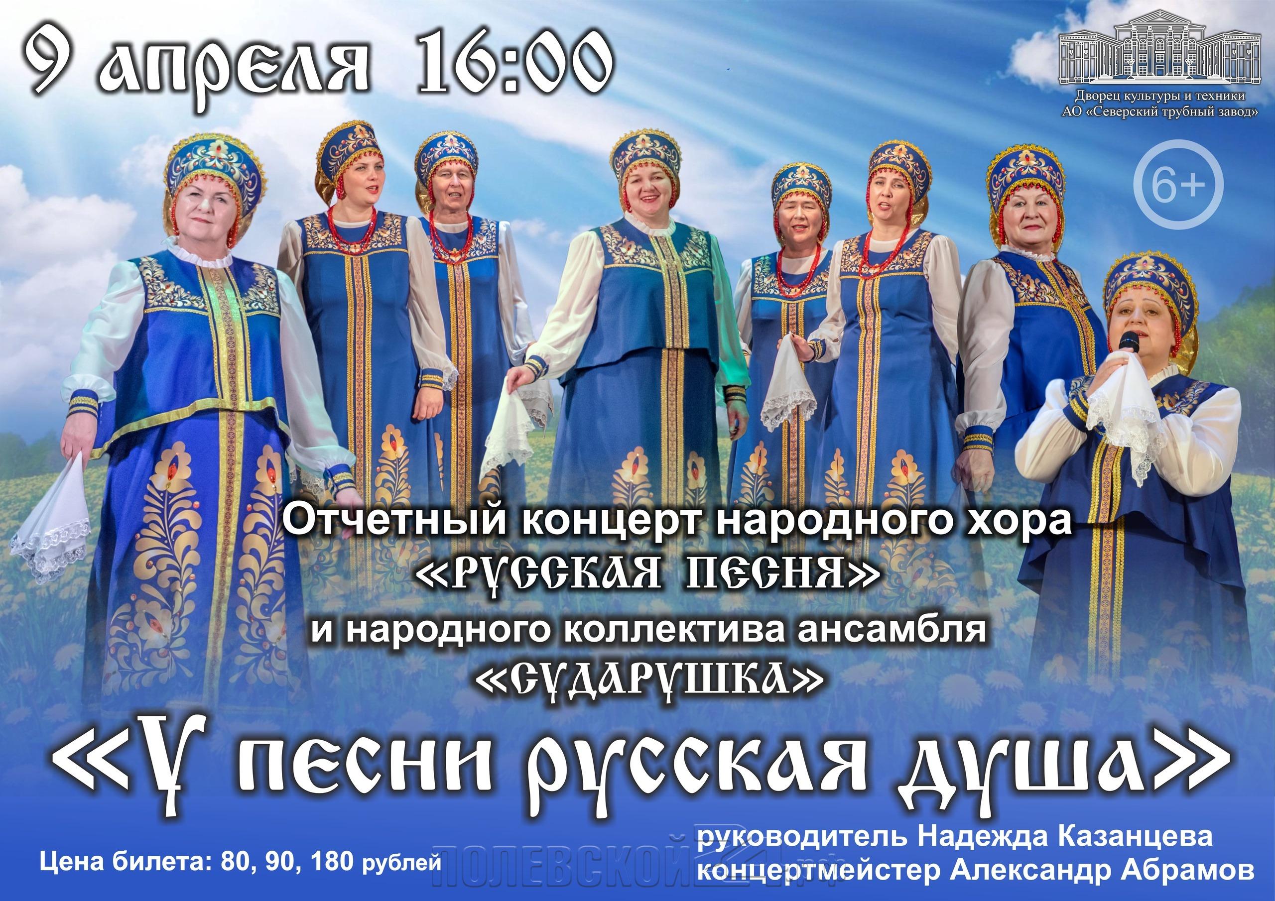9 апреля 16:00 — приглашаем на концерт Народного коллектива хора «Русская песня» и Народного коллектива ансамбля «Сударушка» под руководством Надежды Казанцевой!