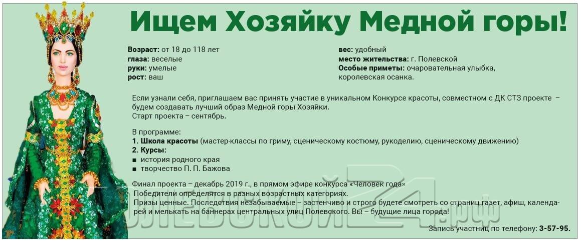 Рабочая правда объявляет новый конкурс — ищем Хозяйку медной горы! Все параметры смотрите в модуле!