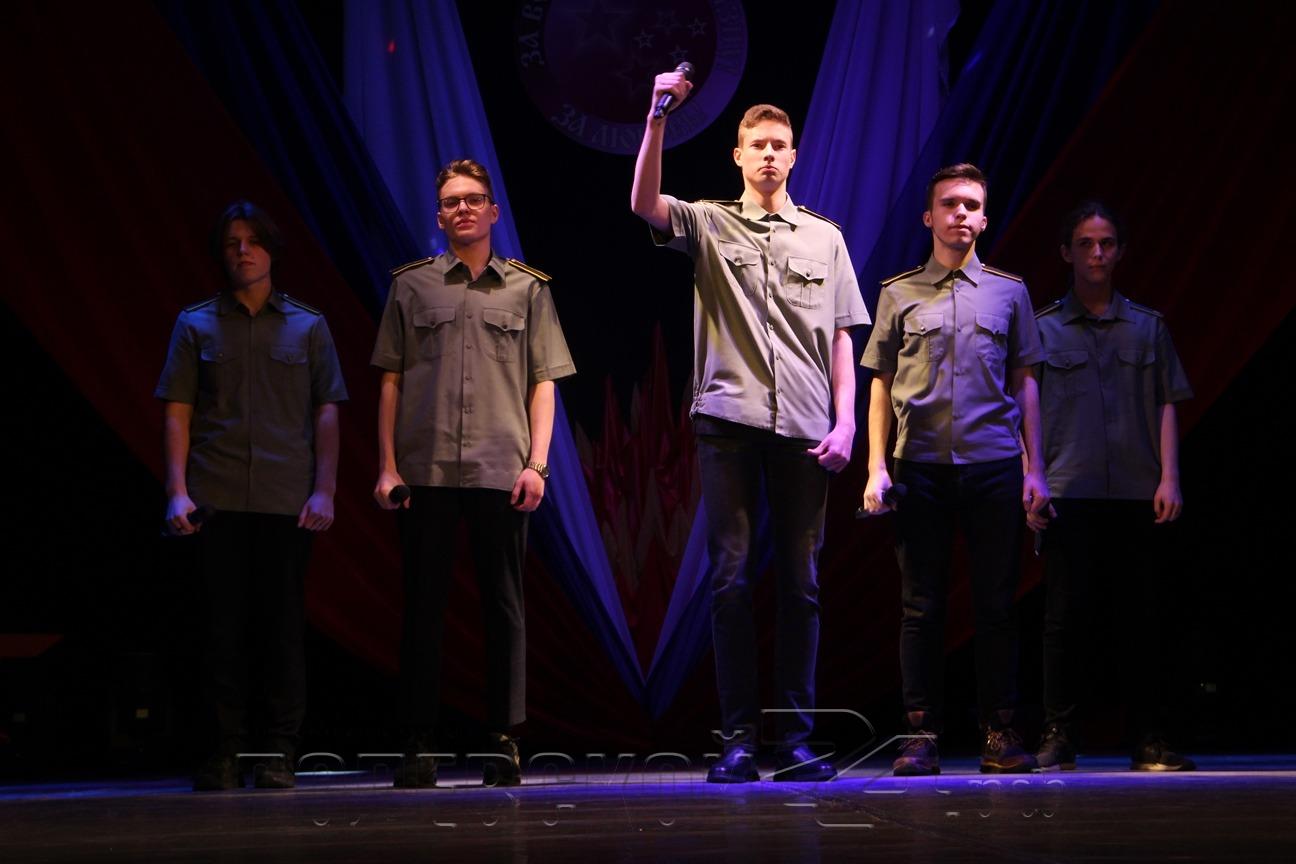 Накануне в большом зале Дворца культуры вновь звучали патриотические песни. Там состоялся традиционный уже фестиваль солдатской песни «За веру» За отчизну» За любовь!».