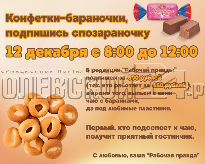 Завтра утром в нашей редакции — шумная акция! Подписываем охотно по цене льготной! Пенсионеры, инвалиды, многодетные родители — за пятьсот рублей подписаться не хотите ли? Пятьсот рублей на весь год — и каждую неделю газета придет!