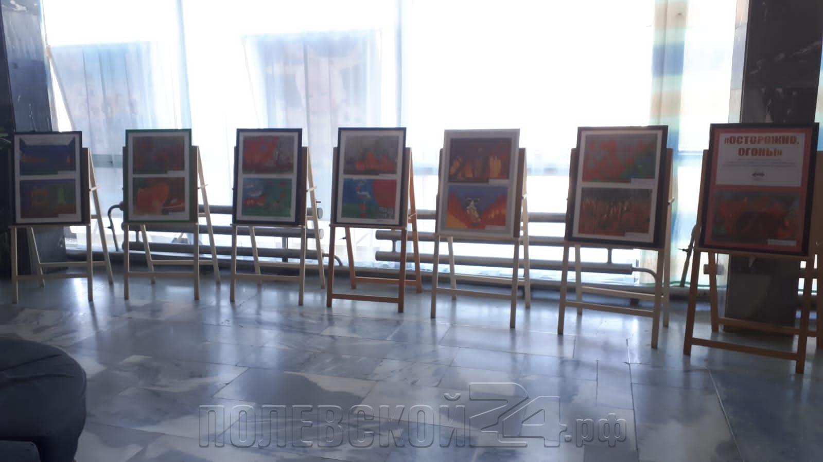 В Полевском в фойе кинотеатра  «Азов» организовали выставка рисунков на противопожарную тематику «ОСТОРОЖНО, ОГОНЬ!». На ней представлены рисунки учащихся детской художественной школы.