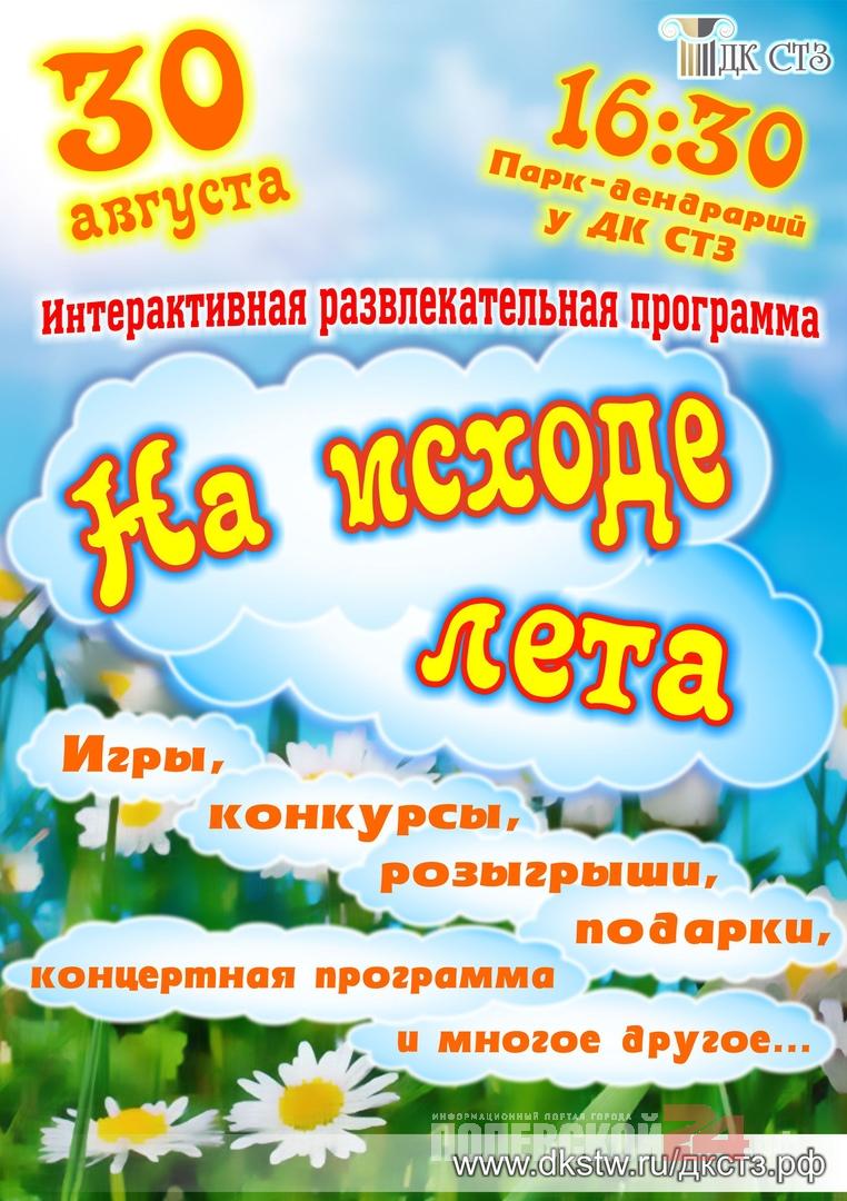 Лето-это маленькая жизнь! Рассказов так много! Да и у нас много новостей! В 61-ый творческий сезон мы вступаем обновленными и, как всегда, позитивными! Будем рады видеть вас на площадке ДК СТЗ 30 августа в 16.30. на исходе лета! У нас всегда прекрасная погода и отличное настроение!