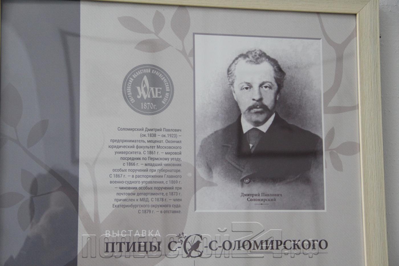 Сегодня в городском Историческом музее состоялось открытие выставки, посвященной увлечению последнего дореволюционного владельца Сысертских заводов — Дмитрия Соломирского. Он был увлечен орнитологией и фотографией и в этом качестве достиг больших успехов. И птицы — предвестники весны — вдохновили полевских и екатеринбургских художников на создание картин и рисунков, посвященных птицам.