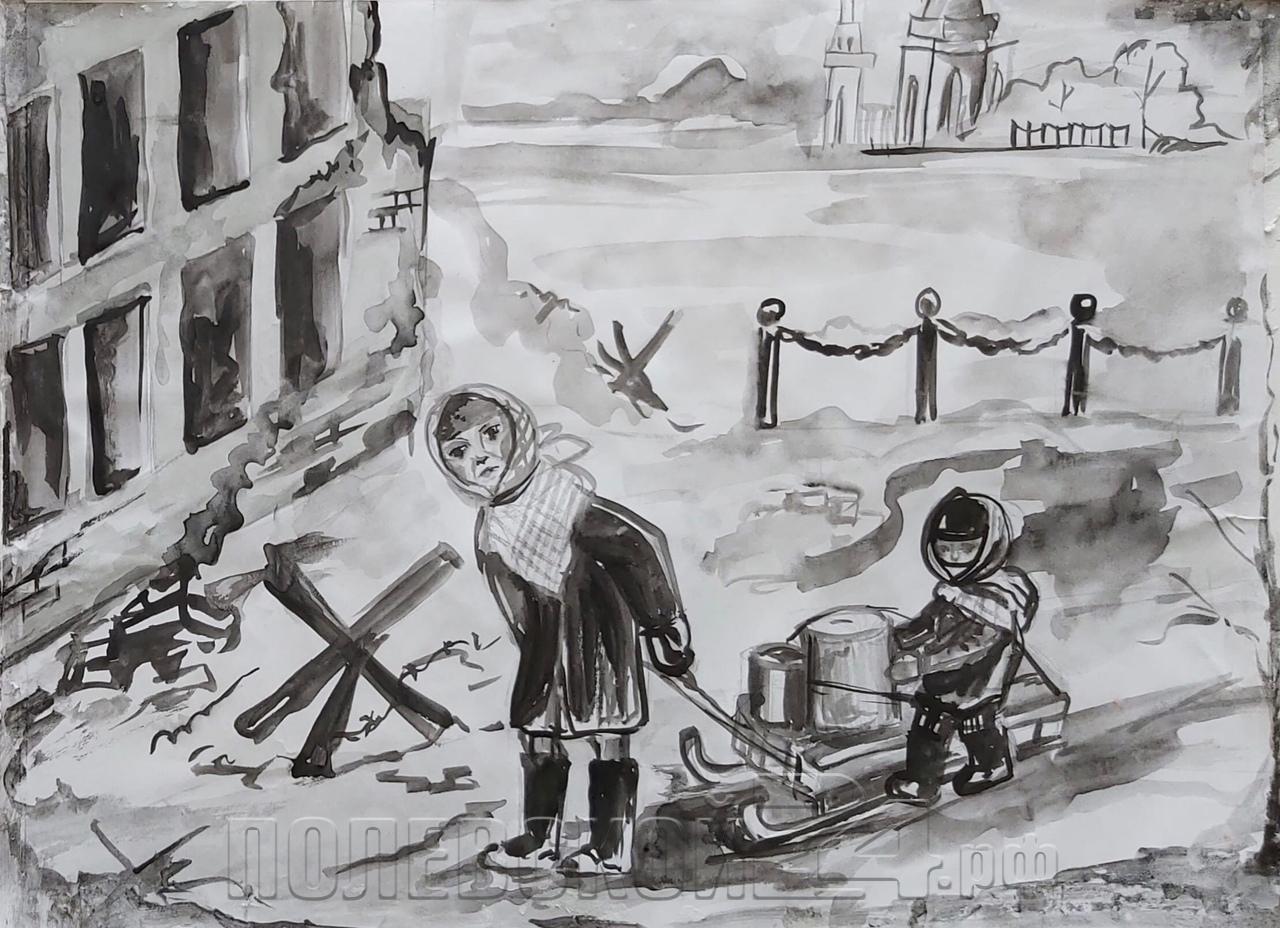 Ее работа «Блокадное детство» признана лучшей в номинации «тушь» среди работ ребят 10-14 лет.