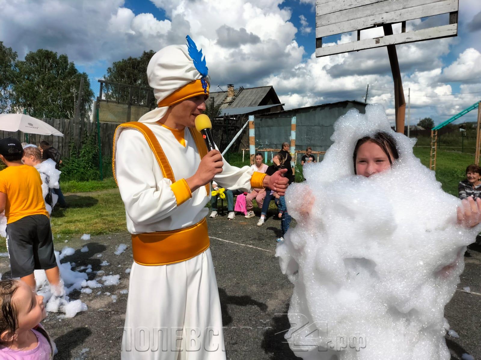На празднике выступили местные коллективы и коллектив » Русский стиль» ЦКиНТ. Детям подготовили пенная дискотеку с конкурсами, а еще — бесплатное мороженое, вата, батуты.