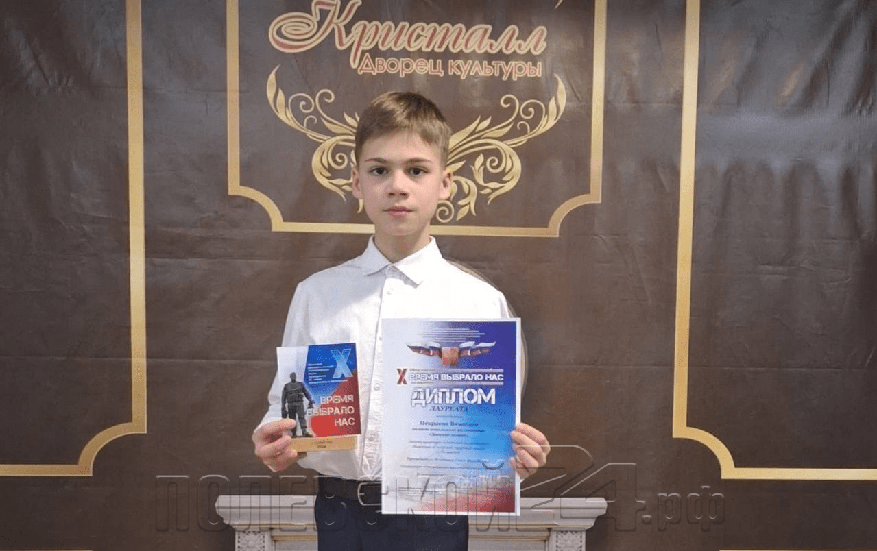 27 января Вячеслав Некрасов стал Лауреатом X Областного фестиваля–конкурса патриотической песни «Время выбрало нас» (Сухой Лог) в возрастной категории 10-13 лет (солисты).