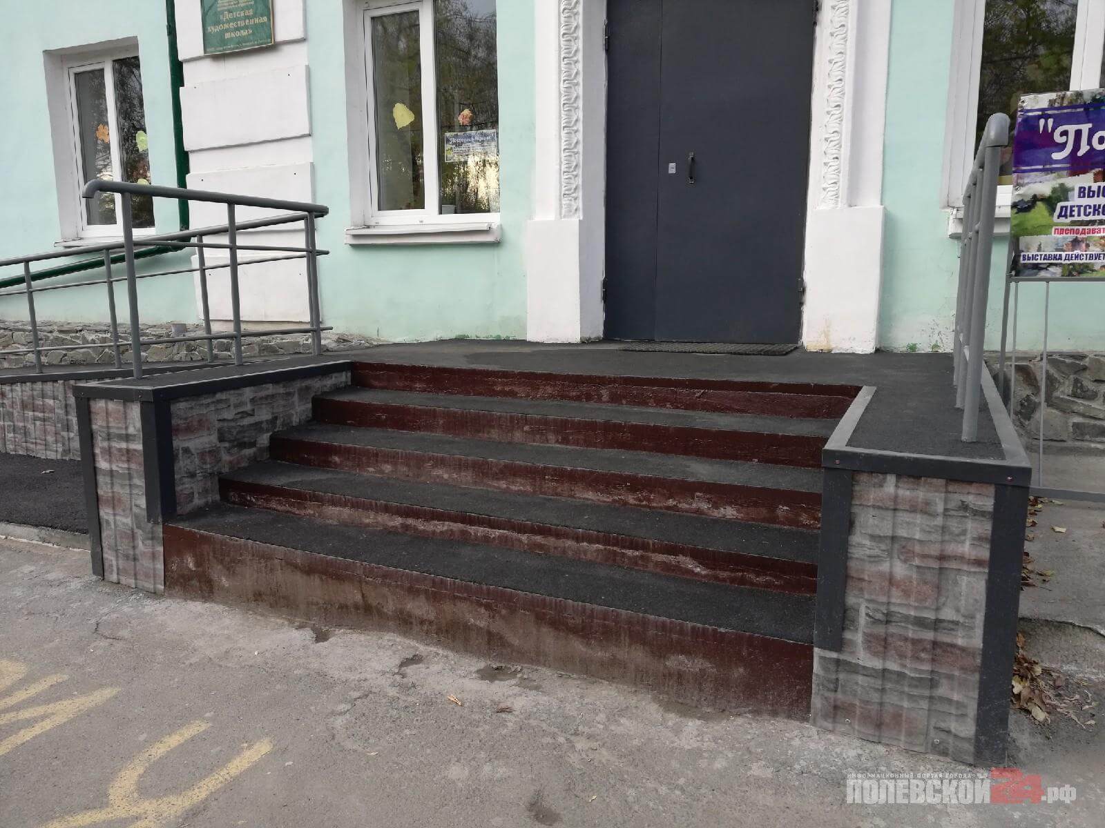 Надо признаться, мы были несправедливы к крыльцу художественной школы. Буквально несколько завершающих штрихов, и крылечко стало выглядеть уже не столь сурово, но гораздо более привлекательно.