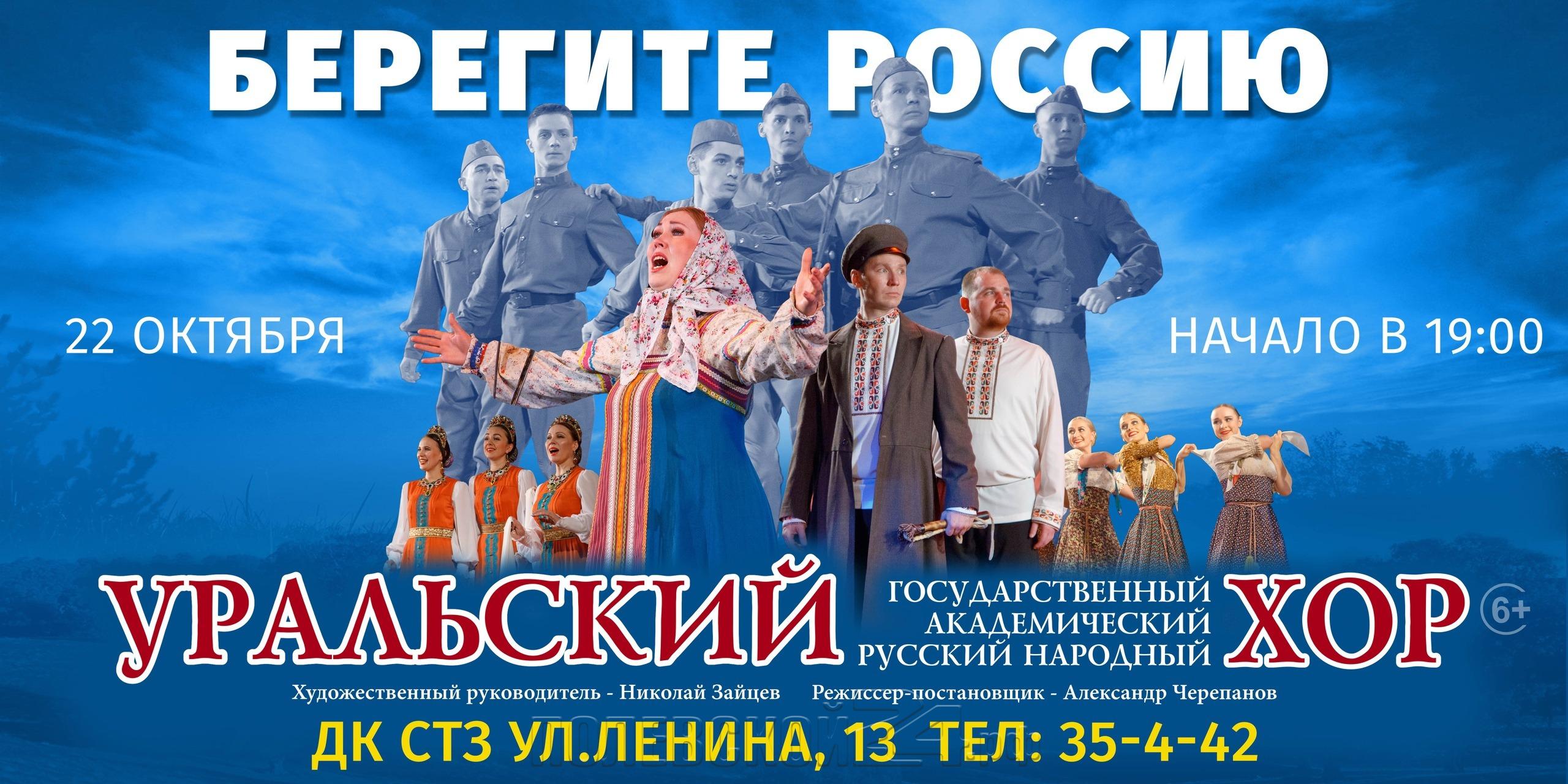 22 октября на сцене Дворца культуры Уральский Государственный Академический русский народный хор представит зрителям новую программу «Берегите Россию» созданную в 2020 году.