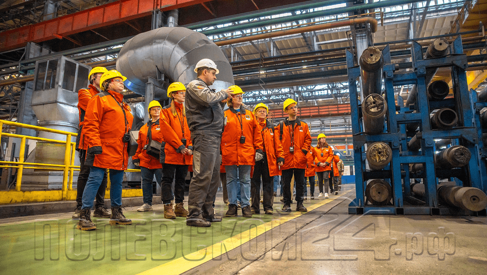 Как и было заявлено в программе — экскурсия началась с обзора Музейного комплекса «Северская домна». Группа познакомилась с технологиями металлургов XVIII-XX веков, узнала факты про кричное производство железа. Яркие впечатления остались, конечно же, от посещения доменного цеха, которому в этом году исполняется 165 лет! Мы повернули время вспять, чтобы каждый гость погрузился в исторические события трех столетий на Северском заводе. Дальше группа направилась в цифровое будущее — в мир высоких технологий производства стальных труб.