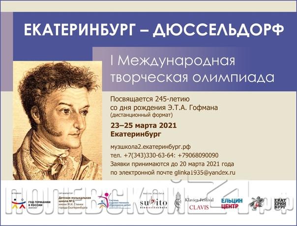 Организатор I Международной творческой олимпиады «ЕКАТЕРИНБУРГ-ДЮССЕЛЬДОРФ» – екатеринбургская Детская музыкальная школа № 2 имени М.И. Глинки, Екатеринбург.