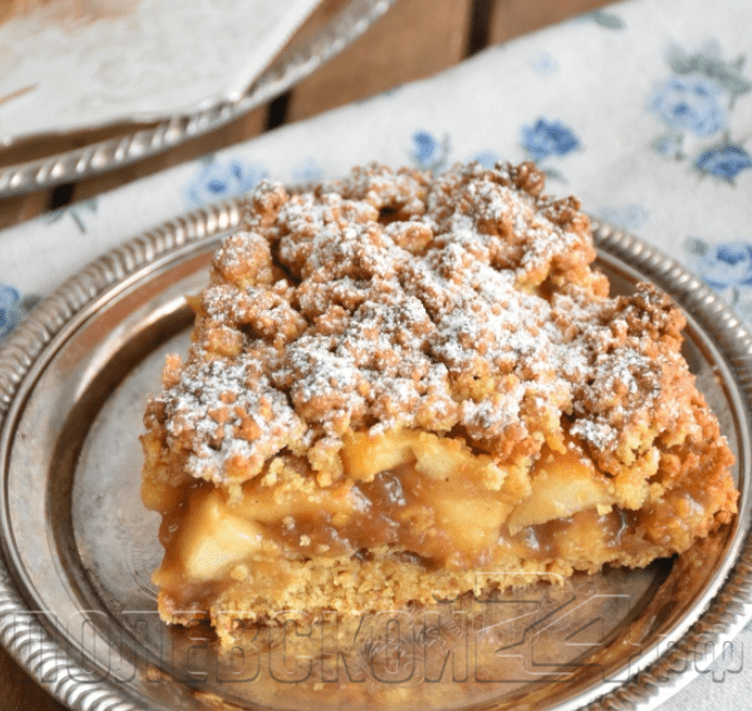 Яблочная сбричолата – итальянский яблочный пирог из песочной крошки и сочной яблочно-карамельной начинки с ароматом корицы и лимона. «Бричола» означает «крошка».