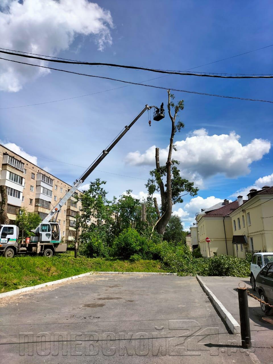 Во дворах между Ялунинским и Вершинина обрезают старые тополя. Даст бог, не под корень…