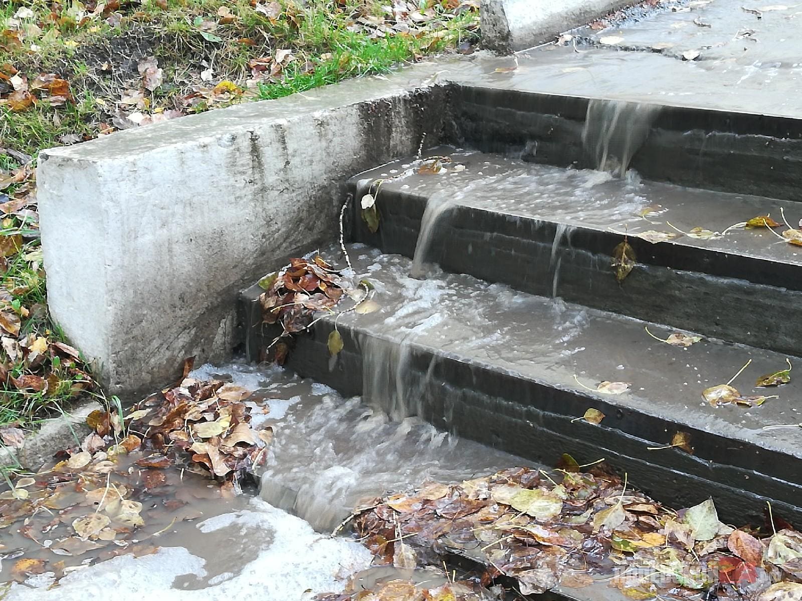 Читатели прислали нам фотографии, как в четверг вода стекает от детской поликлиники к Вершинина и дальше по этой улице.