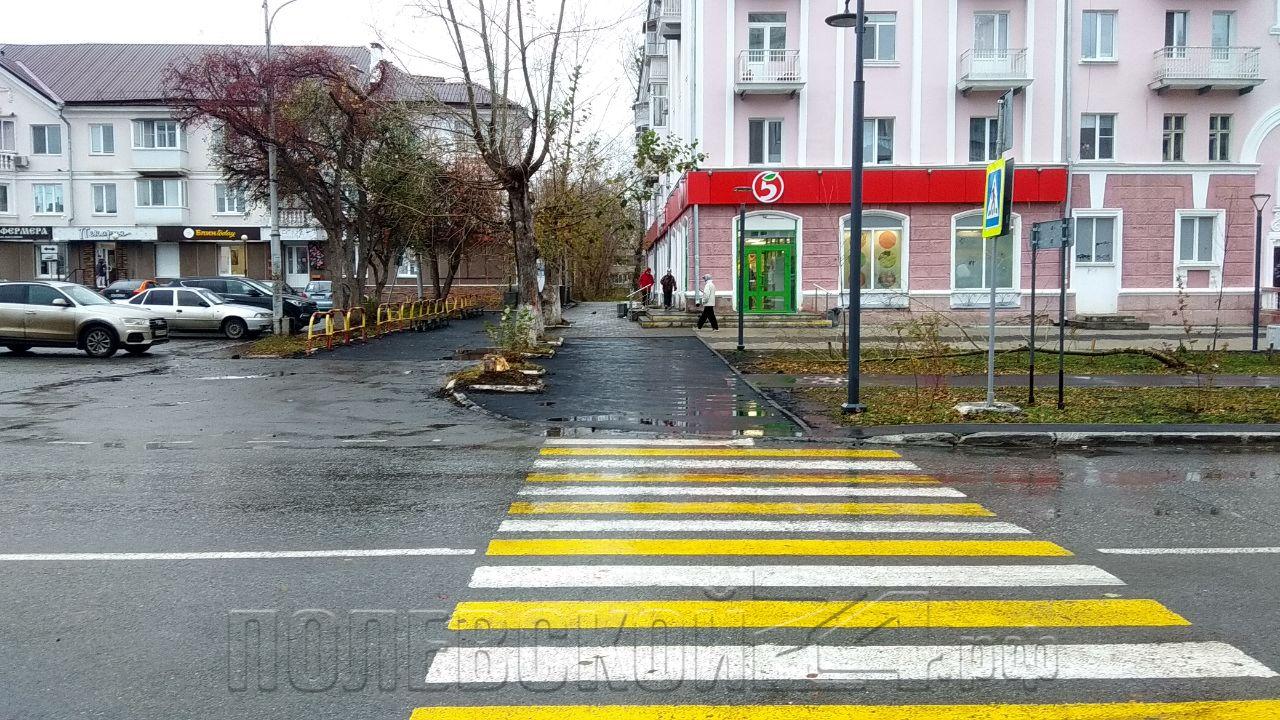 Тем разительнее контраст между этой частью и противоположной стороной — возле дома №2 и бывшего магазина №16. Тут ямы, залитые дождевой водой, по-прежнему преграждают путь пешеходам.