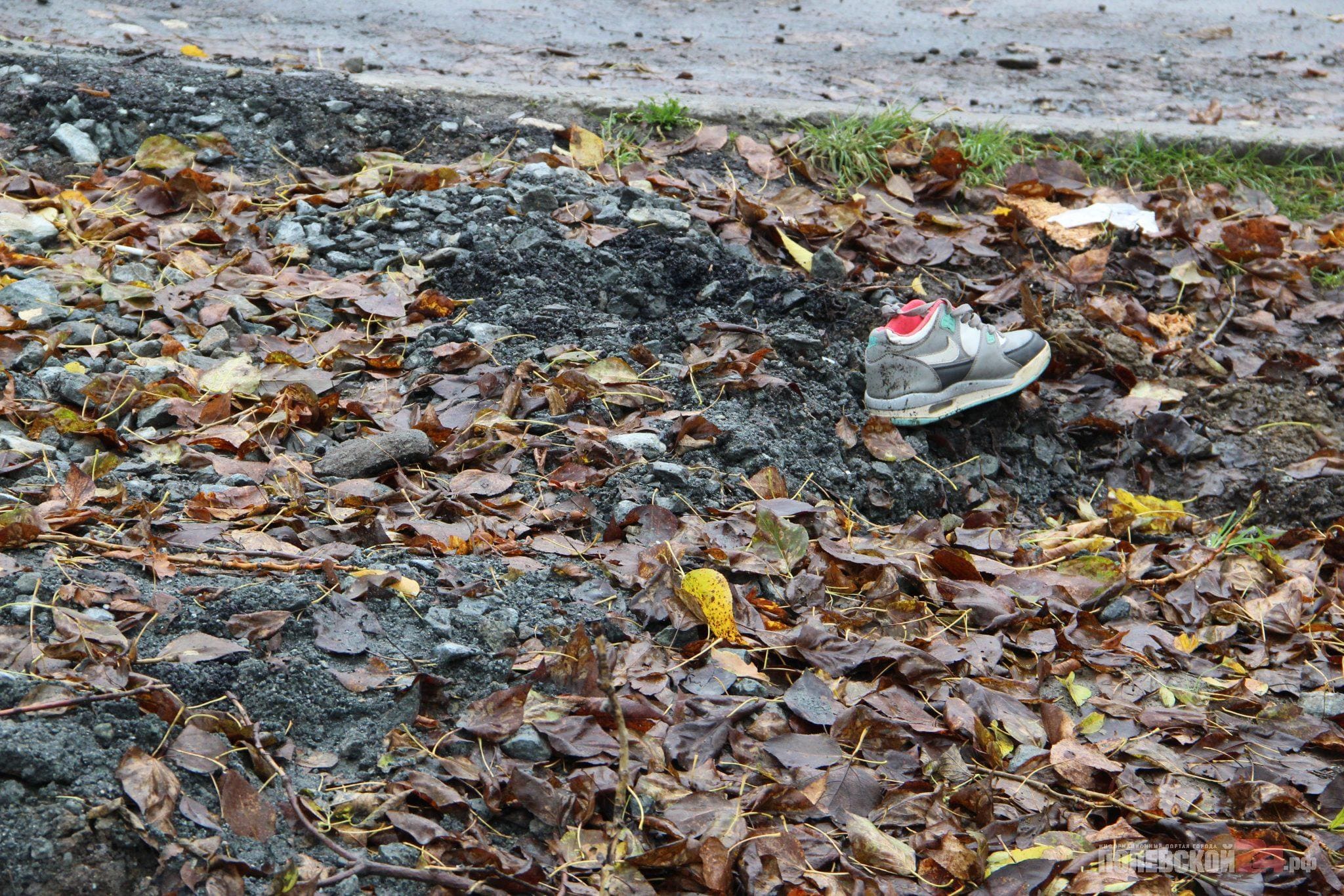 Единственный плюс — на проезжей части залатали дыры. Баки же продолжали сиротливо стоять на газоне.