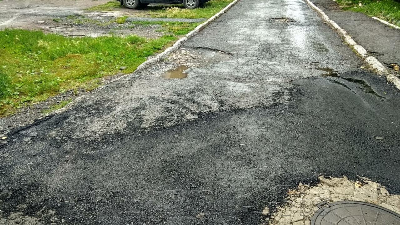 Искореженный въезд в ялунинский 19 двор немного подремонтировали. Это, безусловно, позитив.