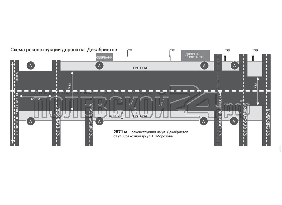 – Проектом запланированы 8 остановочных комплексов с карманами длиной 60 метров в двух направлениях движения: у домов № 1 и 2 на Декабристов, у Дворца спорта, перед поворотом на Добролюбова, перед поворотом на Листопрокатчиков. Здесь же будут установлены 4 светофорных комплекса с пешеходными переходами. После реконструкции по Декабристов можно будет запустить автобус.