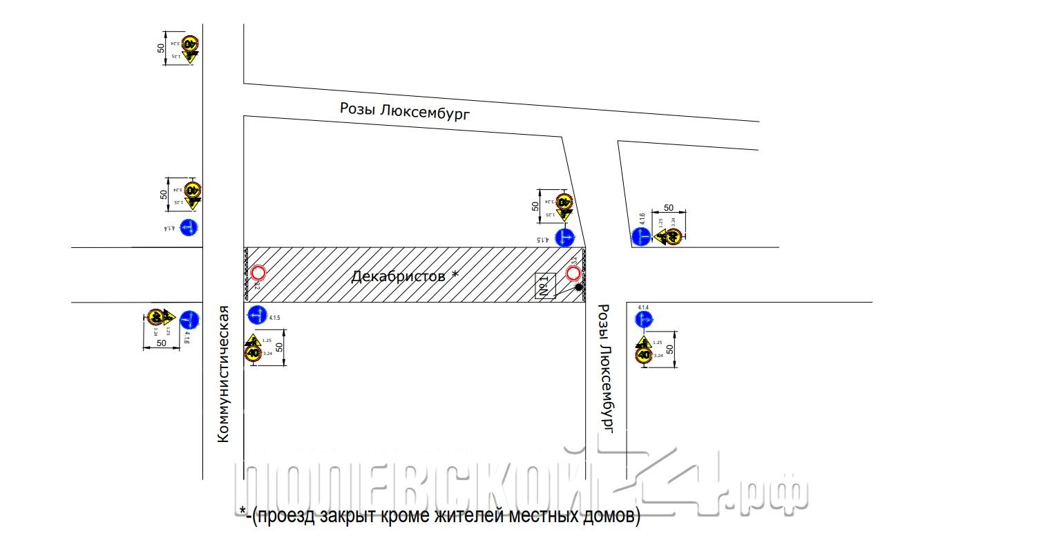 Убедительная просьба ко всем участникам дорожного движения быть внимательными, не нарушать временную схему организации дорожного движения по ул. Декабристов от ул. Коммунистическая до ул. Розы Люксембург, а так же соблюдать Правила дорожного движения.