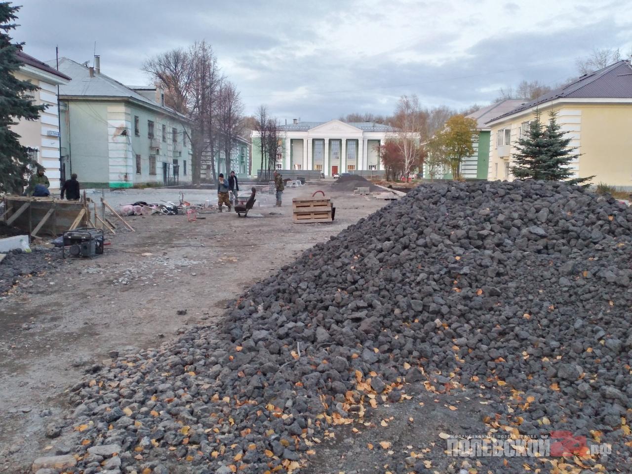 На Трояна убрали забор. Теперь видна работа: гранитные поребрики, основание под фонари, земля под деревьями, будущий тротуар с четной стороны аллеи.