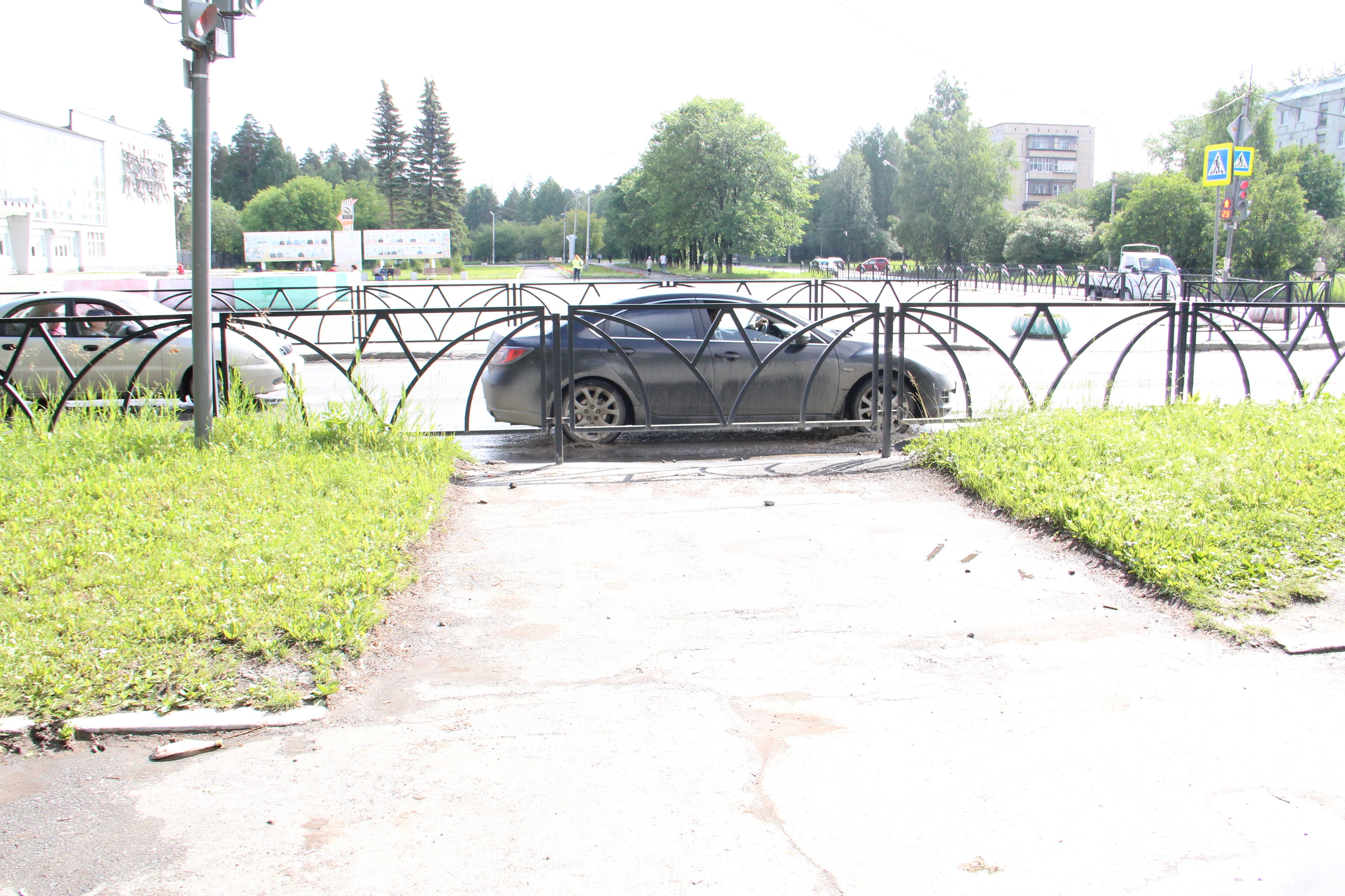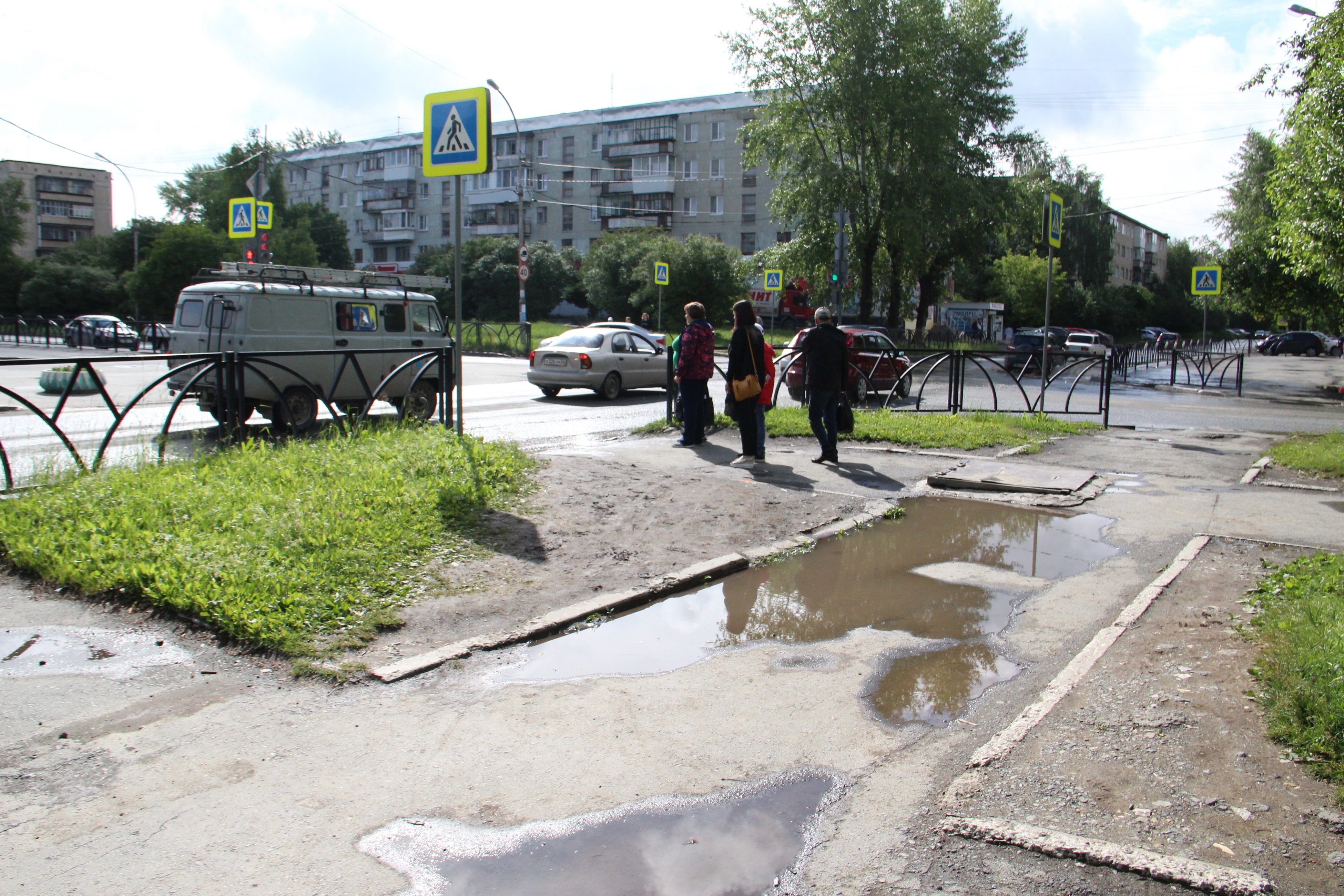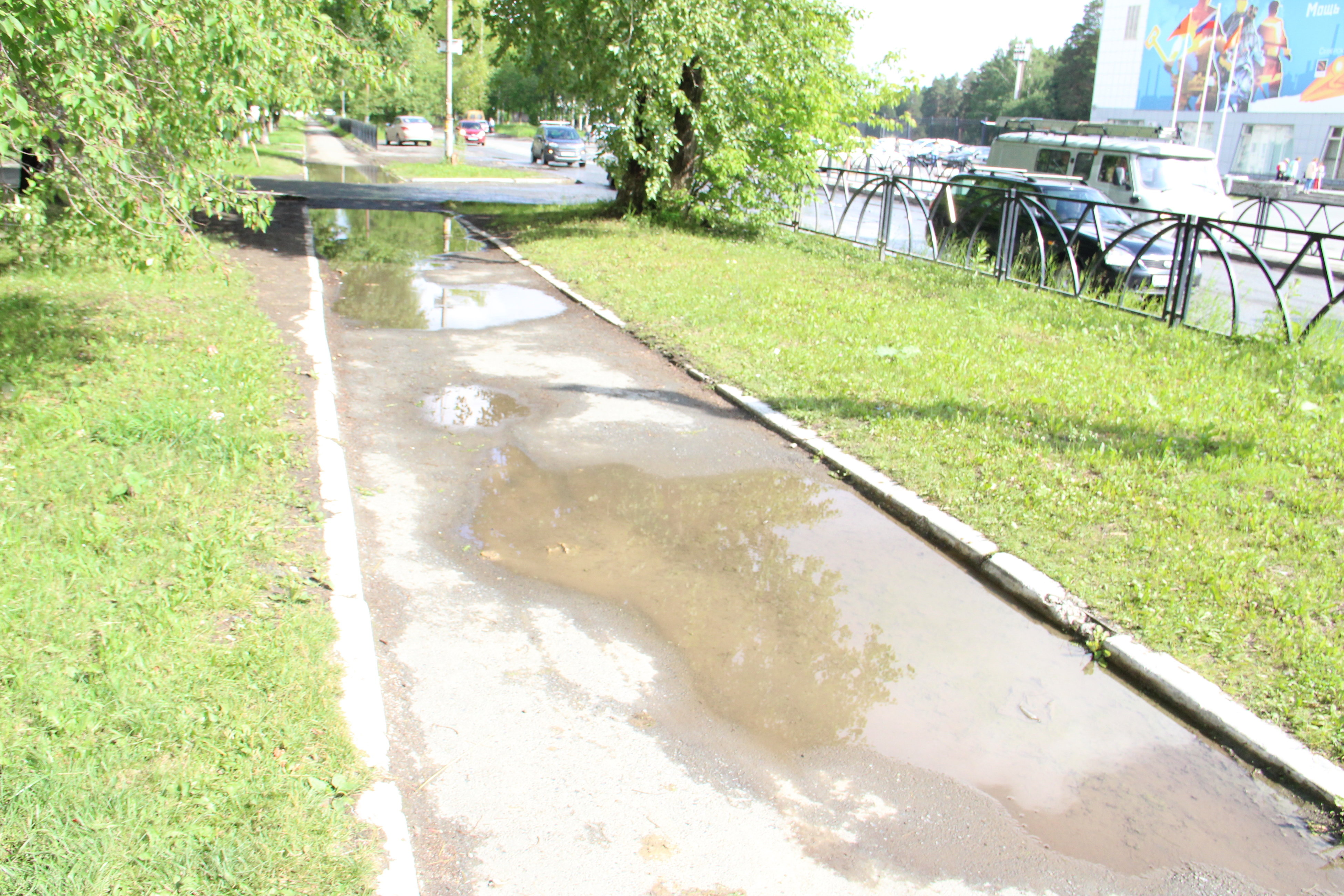 В предполагаемом «центре города» — на перекрестке Коммунистической и Декабристов — сложились все признаки деревни. В первую очередь — огромные лужи, вольготно растекшиеся по тротуару.
