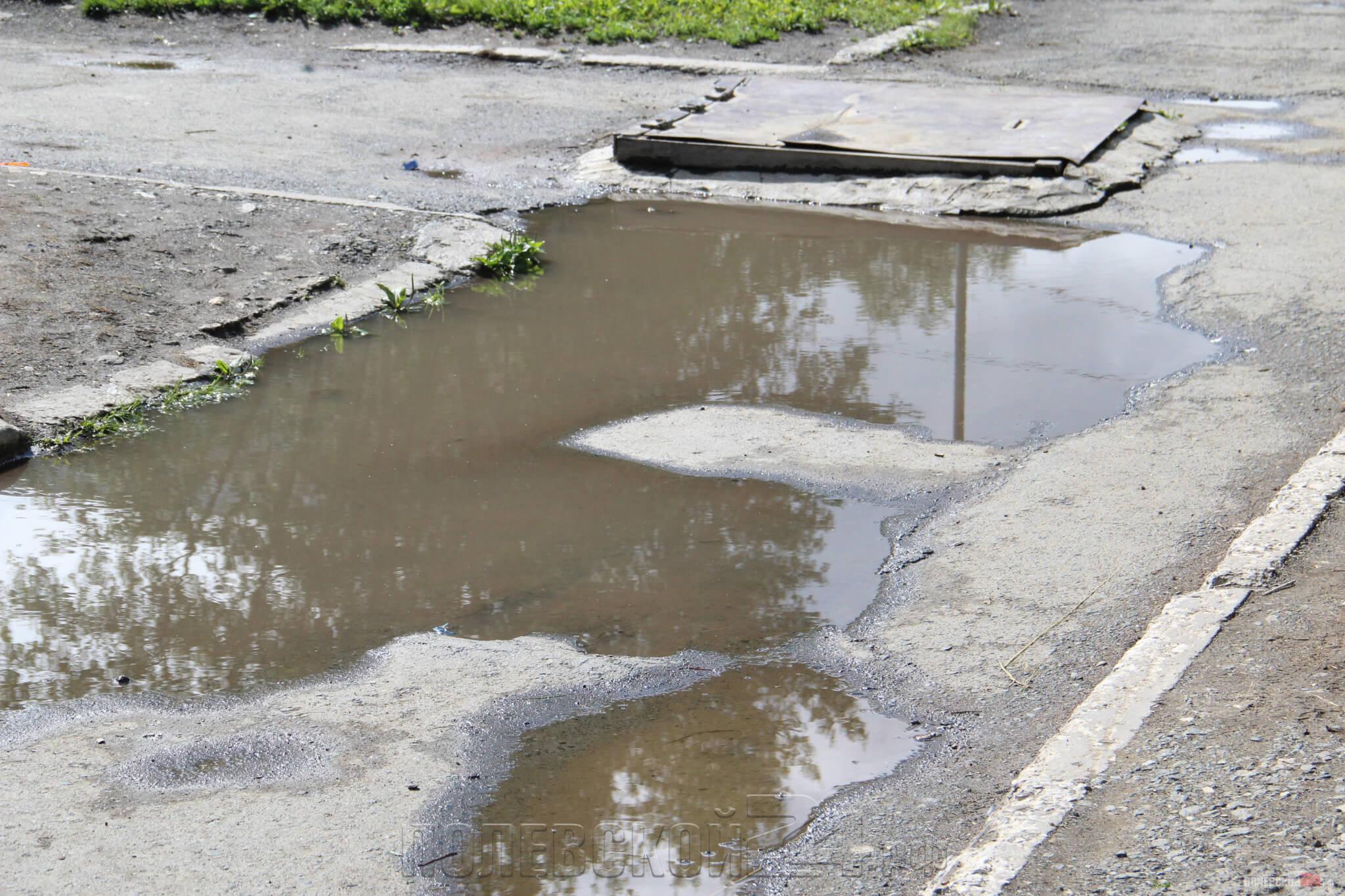 В предполагаемом «центре города» — на перекрестке Коммунистической и Декабристов — сложились все признаки деревни. В первую очередь — огромные лужи, вольготно растекшиеся по тротуару.