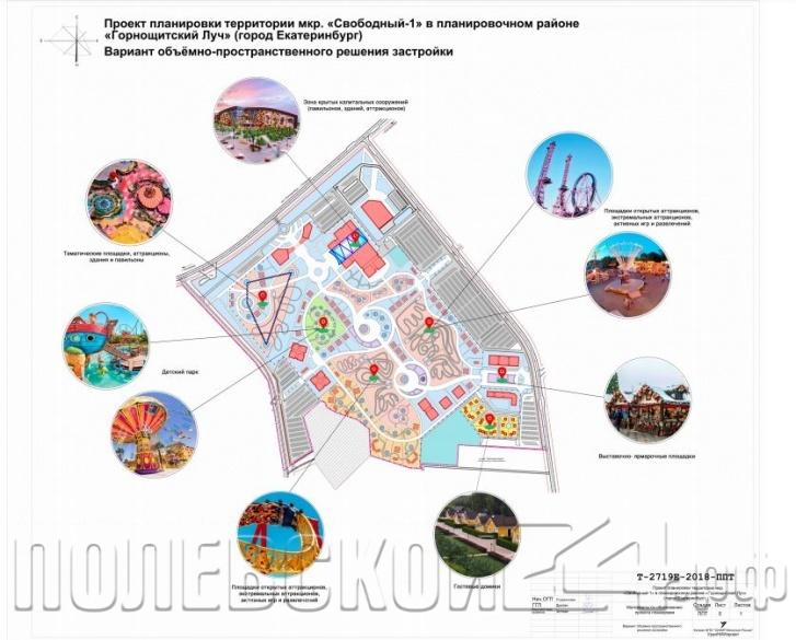 Напомним, в пределах границ, подвластных мэрии Екатеринбурга, в районе Горного Щита, планируется возведение двух гигантских парков развлечений. Общая площадь в итоге составит 94 гектара, а на строительство парков, по сообщению Делового Квартала, уйдет в общей сложности 18 лет. Планируется, что парки смогут принимать до 3 млн посетителей в год.