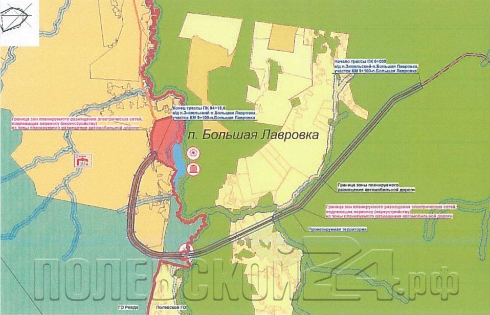 Границы зоны проектируемого размещения объекта, в целях которого предполагается изъятие земельных участков, установлены проектами планировки и межевания территории, утвержденными приказом Министерства строительства и развития инфраструктуры Свердловской области от 04.10.2021 № 561-П «Об утверждении основной части проекта планировки территории для размещения линейного объекта транспортной инфраструктуры регионального значения «Строительство автомобильной дороги «п. Зюзельский-п. Большая Лавровка, участок км 9+100-п. Большая Лавровка на территории Полевского городского округа и городского округа Ревда» и основной части проекта межевания территории для размещения линейного объекта транспортной инфраструктуры регионального значения «Строительство автомобильной дороги «п. Зюзельский-п. Большая Лавровка, участок км 9+100-п. Большая Лавровка на территории Полевского городского округа и городского округа Ревда».