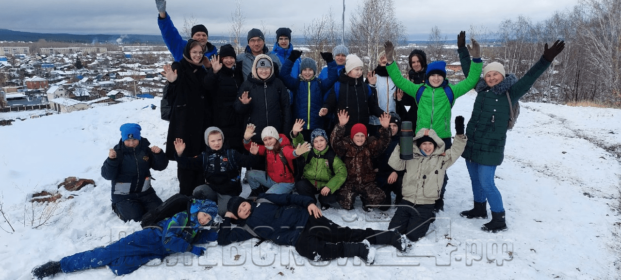 Первая остановка — возле памятника расстрелянным красногвардейцам, затем поднялись на самую высокую точку — 405 м и осмотрели окрестности. Приятным бонусом был вкусный обед, приготовленный на костре. Пока готовили обед время зря не теряли — учились определять высоту склона с помощью нивелира. А еще поиграли в снежки и слепили снеговика, украшенного нарядом из листьев.
