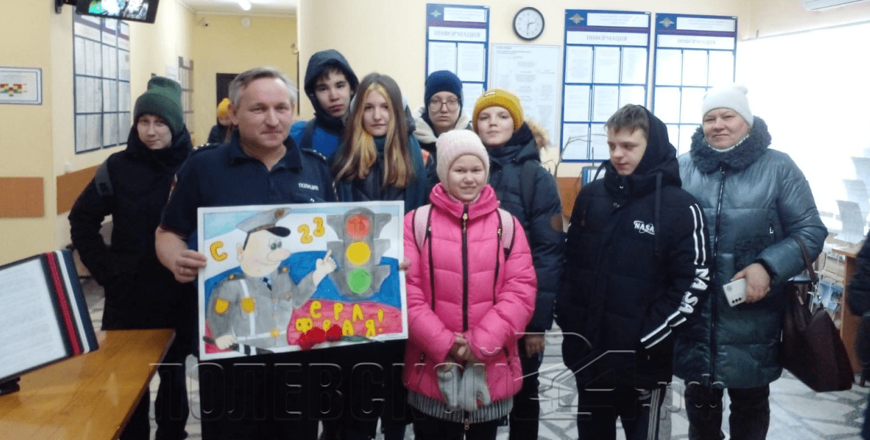 После экскурсии ребята поздравили мужской пол Госавтоинспекции с предстоящим праздником «Днем защитника отечества», за что сотрудники выразили детям большую благодарность!