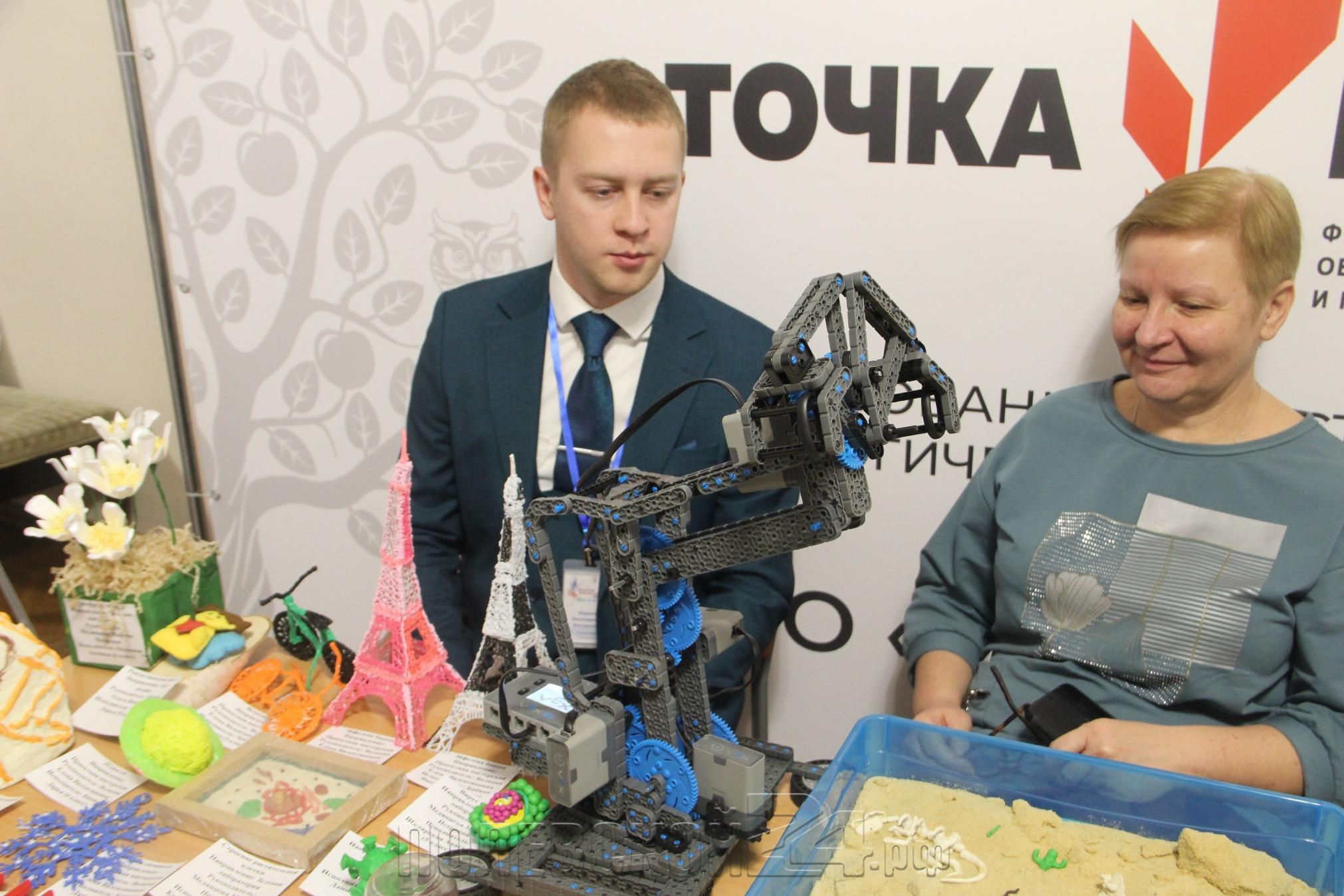 Будущее наступает. На многих стендах можно было испытать себя в виртуальной реальности, а «Точки роста» демонстрировали достижения в робототехнике. Эти направления сейчас наиболее перспективны, и даже дошкольники начинают их осваивать.