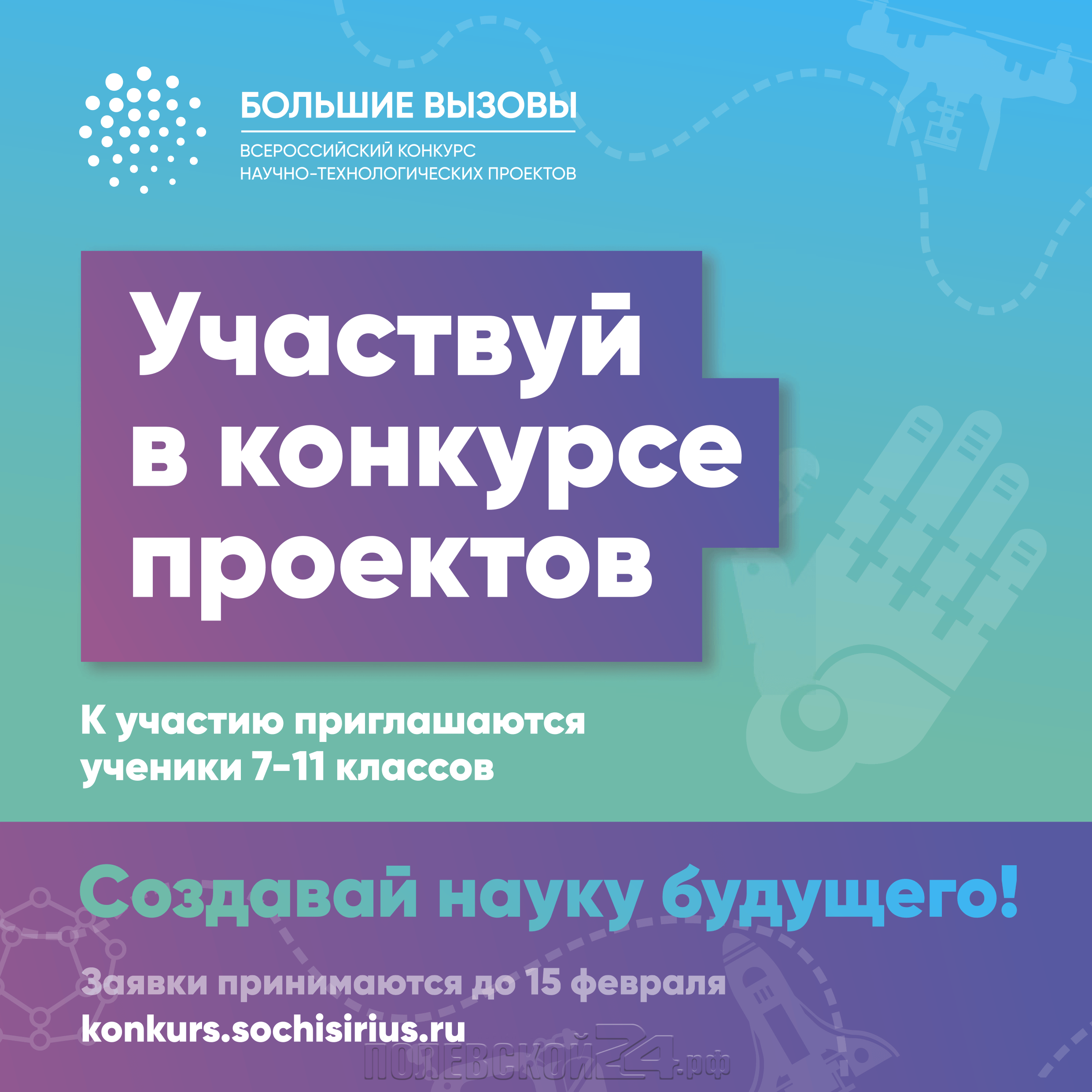 16 ноября 2022 года в Свердловской области открыт прием заявок от школьников 7–11 классов и студентов 1-2 курсов колледжей и техникумов на участие в региональном треке всероссийского конкурса научно-технологических проектов «Большие вызовы». Свою заявку можно отправить до 15 февраля 2023 года. Оператором выступает Фонд «Золотое сечение».