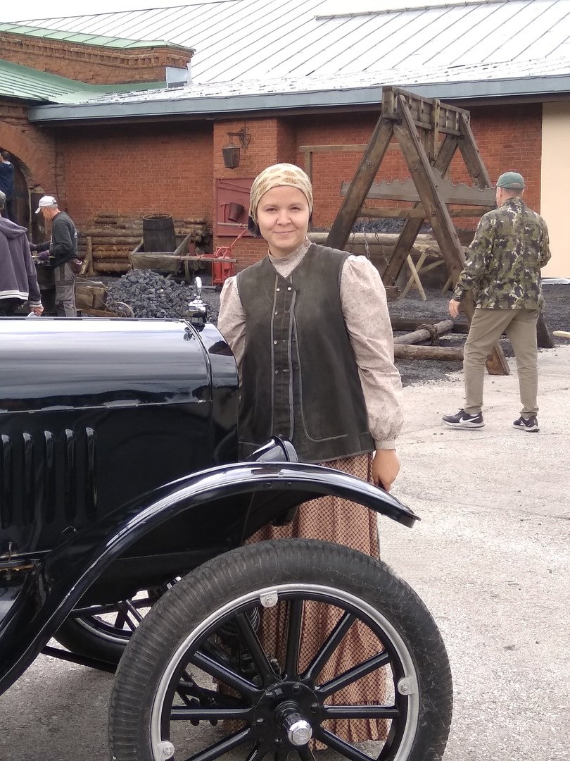 Среди участников съемок — наша коллега Елена Медведева. Вот она возле «самобеглой коляски» (в ее роли снимается раритетный, но содержащийся в отличном состоянии Форд Т примерно столетнего возраста)