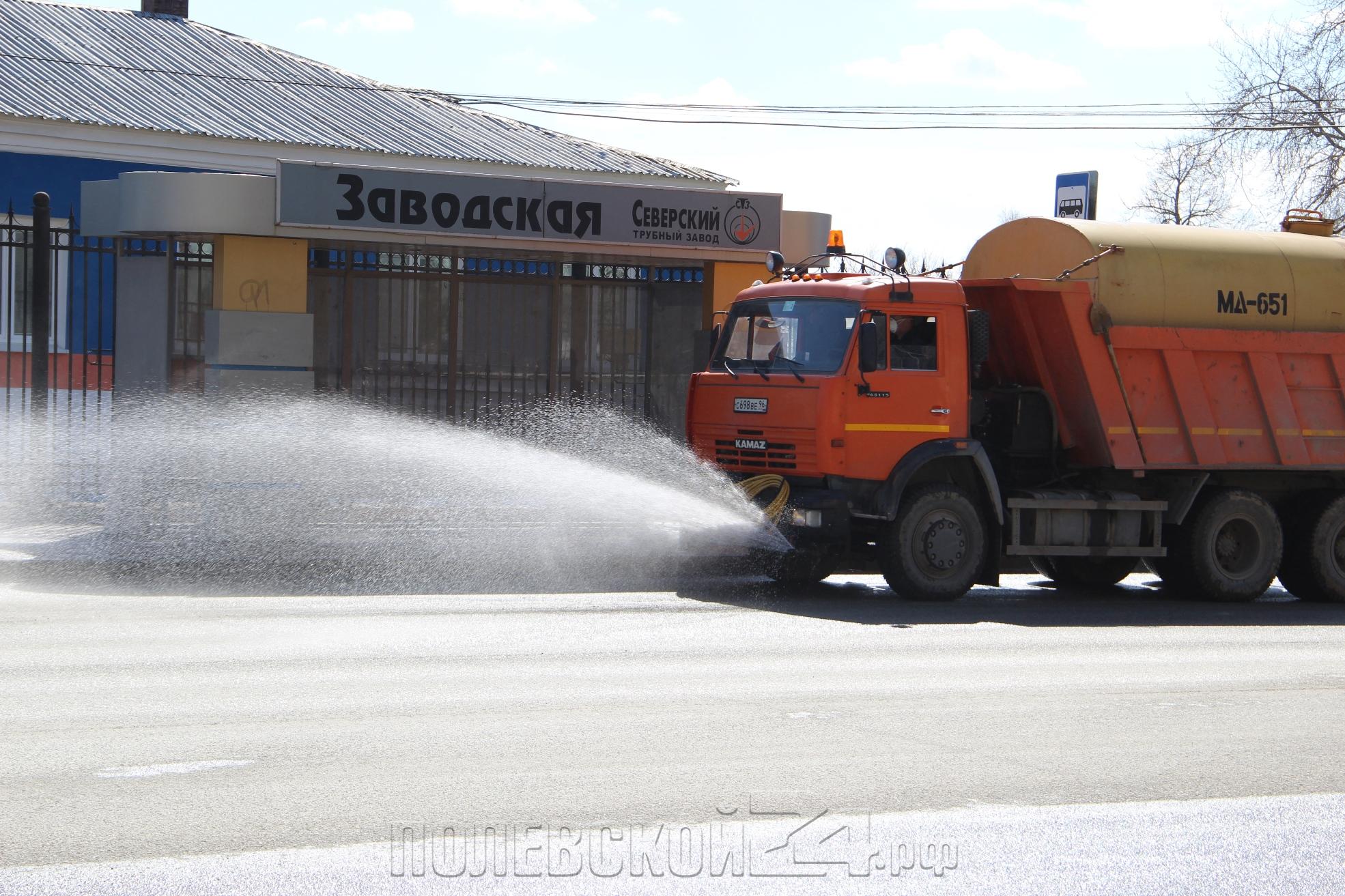 Сегодня многие полевчане могут увидеть, как к остановке подъезжает КамАЗ с баком дезраствора, обливает все вокруг, после чего из ГАЗели выходят люди, похожие на «охотников на привидений», и полностью моют остановочный комплекс.
