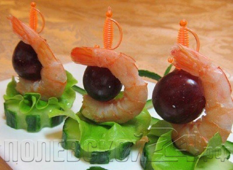 Готовые креветки разложите на огуречные кружочки. Можно добавить чего-нибудь между ними, но не слишком калорийного.