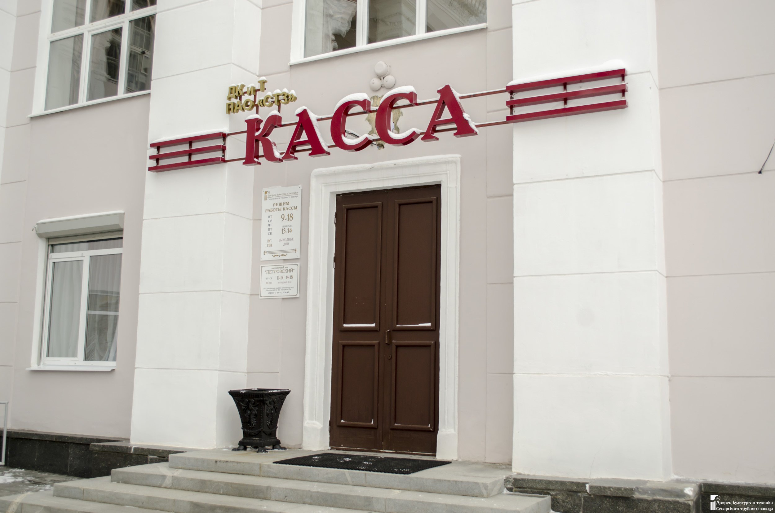 Удобный вход с улицы, смотрибельная вывеска, лаконичная и удобная информация об услугах Дворца, стоимости билетов, схема зрительного зала, афиши ближайших мероприятий – вы все найдете в новом кассовом зале!